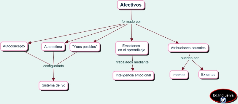 Este Cmap, tiene información relacionada con: Afectivos, Atribuciones causales pueden ser Internas, "Yoes posibles" configurando Sistema del yo, Atribuciones causales pueden ser Externas, Autoestima configurando Sistema del yo, Afectivos formado por "Yoes posibles", Afectivos formado por Autoestima, Afectivos formado por Emociones en el aprendizaje, Emociones en el aprendizaje trabajados mediante Inteligencia emocional, Autoconcepto configurando Sistema del yo, Afectivos formado por Atribuciones causales, Afectivos formado por Autoconcepto