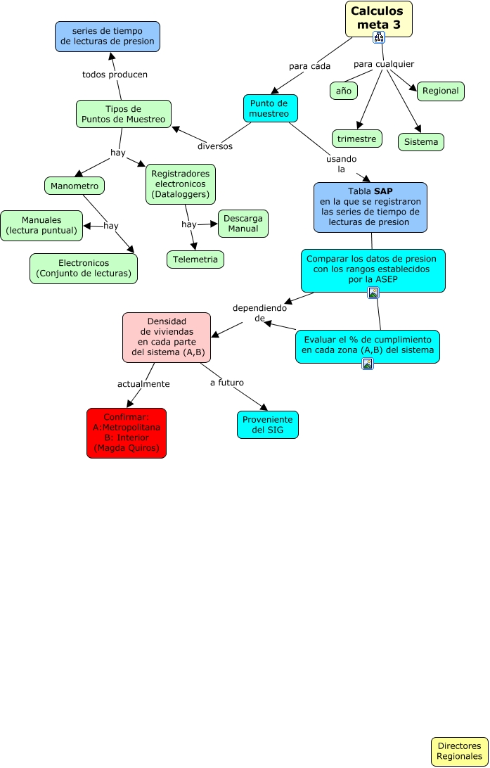 Este Cmap, tiene información relacionada con: calculos_meta3, Manometro hay Electronicos (Conjunto de lecturas), Punto de muestreo usando la Tabla SAP en la que se registraron las series de tiempo de lecturas de presion, Densidad de viviendas en cada parte del sistema (A,B) a futuro Proveniente del SIG, Punto de muestreo diversos Tipos de Puntos de Muestreo, Comparar los datos de presion con los rangos establecidos por la ASEP dependiendo de Densidad de viviendas en cada parte del sistema (A,B), Tipos de Puntos de Muestreo hay Registradores electronicos (Dataloggers), Calculos meta 3 para cualquier trimestre, Tabla SAP en la que se registraron las series de tiempo de lecturas de presion ???? Comparar los datos de presion con los rangos establecidos por la ASEP, Tipos de Puntos de Muestreo todos producen series de tiempo de lecturas de presion, Calculos meta 3 para cualquier año, Registradores electronicos (Dataloggers) hay Telemetria, Calculos meta 3 para cualquier Sistema, Calculos meta 3 para cualquier Regional, Calculos meta 3 para cada Punto de muestreo, Manometro hay Manuales (lectura puntual), Tipos de Puntos de Muestreo hay Manometro, Evaluar el % de cumplimiento en cada zona (A,B) del sistema dependiendo de Densidad de viviendas en cada parte del sistema (A,B), Comparar los datos de presion con los rangos establecidos por la ASEP ???? Evaluar el % de cumplimiento en cada zona (A,B) del sistema, Densidad de viviendas en cada parte del sistema (A,B) actualmente Confirmar: A:Metropolitana B: Interior (Magda Quiros), Registradores electronicos (Dataloggers) hay Descarga Manual