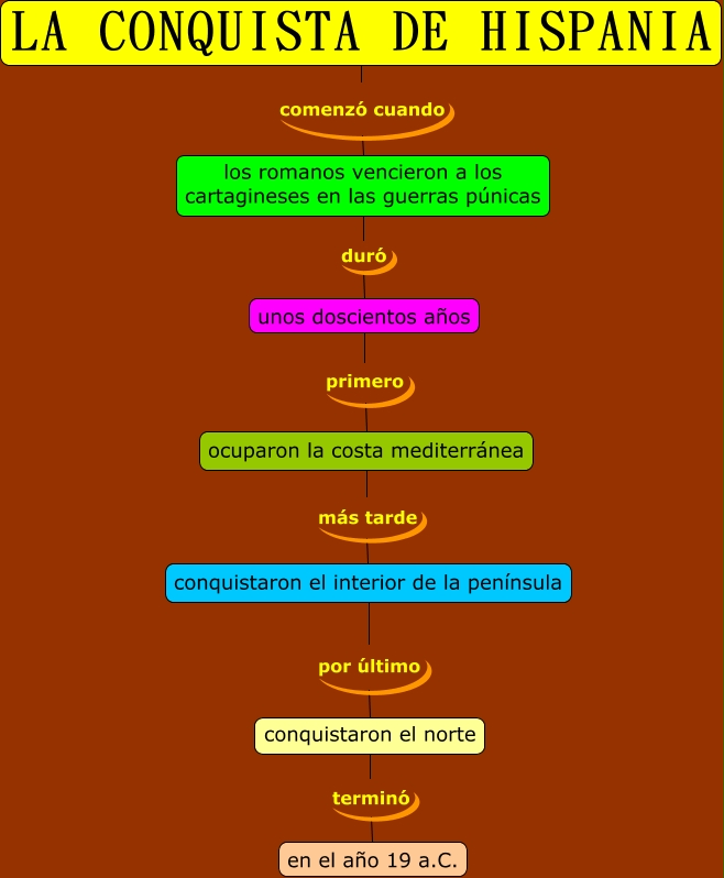Este Cmap, tiene información relacionada con: La conquista de Hispania, conquistaron el interior de la península por último conquistaron el norte, conquistaron el norte terminó en el año 19 a.C., LA CONQUISTA DE HISPANIA comenzó cuando los romanos vencieron a los cartagineses en las guerras púnicas, unos doscientos años primero ocuparon la costa mediterránea, los romanos vencieron a los cartagineses en las guerras púnicas duró unos doscientos años, ocuparon la costa mediterránea más tarde conquistaron el interior de la península