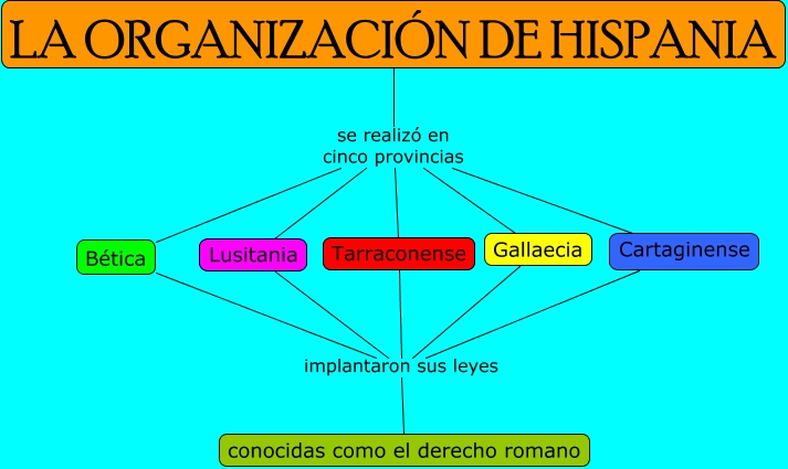Este Cmap, tiene información relacionada con: La organización de Hispania, LA ORGANIZACIÓN DE HISPANIA se realizó en cinco provincias Lusitania, LA ORGANIZACIÓN DE HISPANIA se realizó en cinco provincias Bética, Lusitania implantaron sus leyes conocidas como el derecho romano, Cartaginense implantaron sus leyes conocidas como el derecho romano, LA ORGANIZACIÓN DE HISPANIA se realizó en cinco provincias Tarraconense, Bética implantaron sus leyes conocidas como el derecho romano, LA ORGANIZACIÓN DE HISPANIA se realizó en cinco provincias Cartaginense, Tarraconense implantaron sus leyes conocidas como el derecho romano, Gallaecia implantaron sus leyes conocidas como el derecho romano, LA ORGANIZACIÓN DE HISPANIA se realizó en cinco provincias Gallaecia