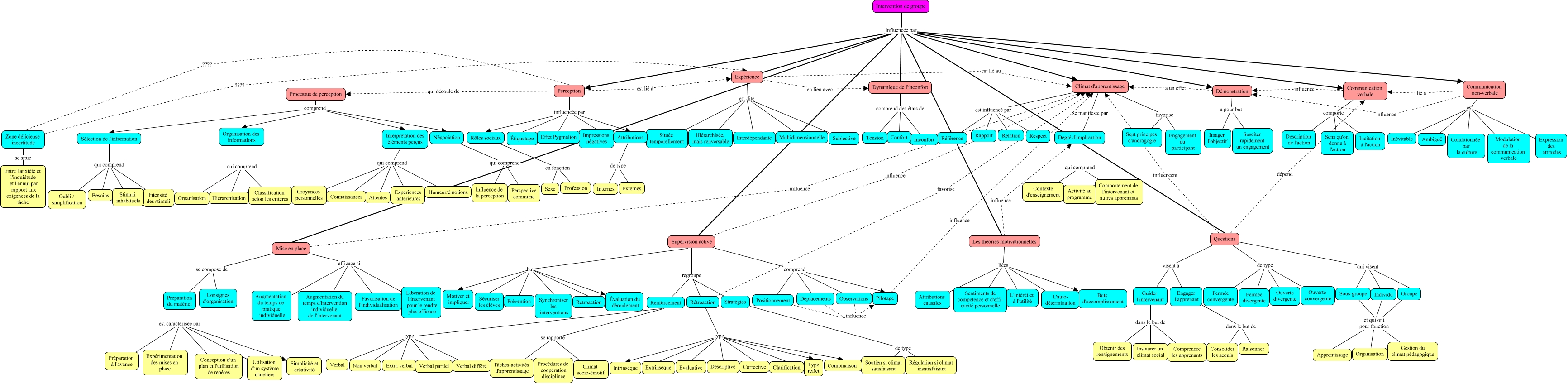 Cette carte de concepts créée avec IHMC CmapTools traite de: TEST, Intervention de groupe influencée par Communication verbale, Processus de perception comprend Négociation, Préparation du matériel est caractérisée par Expérimentation des mises en place, Supervision active but Évaluation du déroulement, Climat d'apprentissage se manifeste par Degré d'implication, Préparation du matériel est caractérisée par Simplicité et créativité, Interprétation des éléments perçus qui comprend Connaissances, Questions visent à Guider l'intervenant, Communication verbale comporte Description de l'action, Questions qui visent Groupe, Processus de perception comprend Interprétation des éléments perçus, Rôles sociaux en fonction Profession, Degré d'implication qui comprend Activité au programme, Pilotage influence Climat d'apprentissage, Supervision active comprend Observations, Rétroaction type Extrinsèque, Intervention de groupe influencée par Dynamique de l'inconfort, Les théories motivationnelles influence Degré d'implication, Supervision active but Motiver et impliquer, Interprétation des éléments perçus qui comprend Attentes