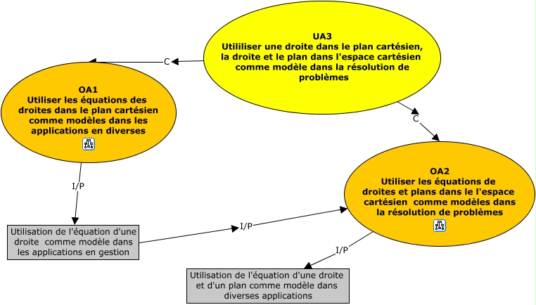 Cette carte de concepts créée avec IHMC CmapTools traite de: UA3, UA3 Utililiser une droite dans le plan cartésien, la droite et le plan dans l'espace cartésien comme modèle dans la résolution de problèmes C OA2 Utiliser les équations de droites et plans dans le l'espace cartésien comme modèles dans la résolution de problèmes, OA1 Utiliser les équations des droites dans le plan cartésien comme modèles dans les applications en diverses I/P Utilisation de l'équation d'une droite comme modèle dans les applications en gestion, UA3 Utililiser une droite dans le plan cartésien, la droite et le plan dans l'espace cartésien comme modèle dans la résolution de problèmes C OA1 Utiliser les équations des droites dans le plan cartésien comme modèles dans les applications en diverses, Utilisation de l'équation d'une droite comme modèle dans les applications en gestion I/P OA2 Utiliser les équations de droites et plans dans le l'espace cartésien comme modèles dans la résolution de problèmes, OA2 Utiliser les équations de droites et plans dans le l'espace cartésien comme modèles dans la résolution de problèmes I/P Utilisation de l'équation d'une droite et d'un plan comme modèle dans diverses applications