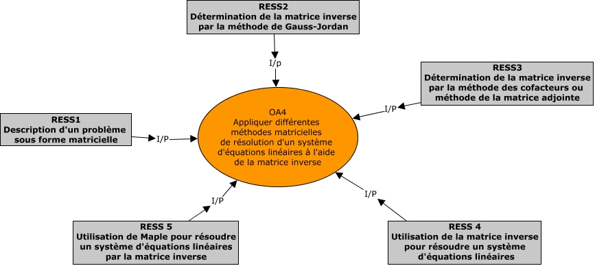 Cette carte de concepts créée avec IHMC CmapTools traite de: UA1-OA4, RESS 4 Utilisation de la matrice inverse pour résoudre un système d'équations linéaires I/P OA4 Appliquer différentes méthodes matricielles de résolution d'un système d'équations linéaires à l'aide de la matrice inverse, RESS 5 Utilisation de Maple pour résoudre un système d'équations linéaires par la matrice inverse I/P OA4 Appliquer différentes méthodes matricielles de résolution d'un système d'équations linéaires à l'aide de la matrice inverse, RESS2 Détermination de la matrice inverse par la méthode de Gauss-Jordan I/p OA4 Appliquer différentes méthodes matricielles de résolution d'un système d'équations linéaires à l'aide de la matrice inverse, RESS1 Description d'un problème sous forme matricielle I/P OA4 Appliquer différentes méthodes matricielles de résolution d'un système d'équations linéaires à l'aide de la matrice inverse, RESS3 Détermination de la matrice inverse par la méthode des cofacteurs ou méthode de la matrice adjointe I/P OA4 Appliquer différentes méthodes matricielles de résolution d'un système d'équations linéaires à l'aide de la matrice inverse