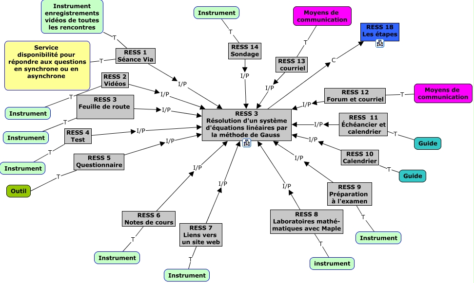 Cette carte de concepts créée avec IHMC CmapTools traite de: UA1-OA2-RESS3, RESS 5 Questionnaire I/P RESS 3 Résolution d'un système d'équations linéaires par la méthode de Gauss, RESS 10 Calendrier T Guide, RESS 10 Calendrier I/P RESS 3 Résolution d'un système d'équations linéaires par la méthode de Gauss, RESS 8 Laboratoires mathé- matiques avec Maple T instrument, RESS 14 Sondage I/P RESS 3 Résolution d'un système d'équations linéaires par la méthode de Gauss, RESS 6 Notes de cours T Instrument, RESS 14 Sondage T Instrument, RESS 9 Préparation à l'examen I/P RESS 3 Résolution d'un système d'équations linéaires par la méthode de Gauss, RESS 5 Questionnaire T Outil, RESS 8 Laboratoires mathé- matiques avec Maple I/P RESS 3 Résolution d'un système d'équations linéaires par la méthode de Gauss, RESS 11 Échéancier et calendrier T Guide, RESS 13 courriel T Moyens de communication, RESS 3 Feuille de route T Instrument, RESS 9 Préparation à l'examen T Instrument, RESS 3 Feuille de route I/P RESS 3 Résolution d'un système d'équations linéaires par la méthode de Gauss, RESS 4 Test I/P RESS 3 Résolution d'un système d'équations linéaires par la méthode de Gauss, RESS 7 Liens vers un site web T Instrument, RESS 11 Échéancier et calendrier I/P RESS 3 Résolution d'un système d'équations linéaires par la méthode de Gauss, RESS 12 Forum et courriel T Moyens de communication, RESS 1 Séance Via I/P RESS 3 Résolution d'un système d'équations linéaires par la méthode de Gauss