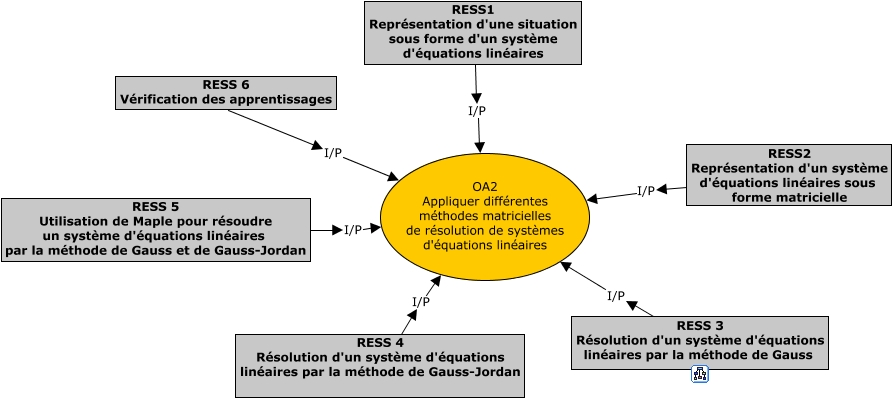 Cette carte de concepts créée avec IHMC CmapTools traite de: UA1-OA2, RESS 5 Utilisation de Maple pour résoudre un système d'équations linéaires par la méthode de Gauss et de Gauss-Jordan I/P OA2 Appliquer différentes méthodes matricielles de résolution de systèmes d'équations linéaires, RESS2 Représentation d'un système d'équations linéaires sous forme matricielle I/P OA2 Appliquer différentes méthodes matricielles de résolution de systèmes d'équations linéaires, RESS 3 Résolution d'un système d'équations linéaires par la méthode de Gauss I/P OA2 Appliquer différentes méthodes matricielles de résolution de systèmes d'équations linéaires, RESS1 Représentation d'une situation sous forme d'un système d'équations linéaires I/P OA2 Appliquer différentes méthodes matricielles de résolution de systèmes d'équations linéaires, RESS 4 Résolution d'un système d'équations linéaires par la méthode de Gauss-Jordan I/P OA2 Appliquer différentes méthodes matricielles de résolution de systèmes d'équations linéaires, RESS 6 Vérification des apprentissages I/P OA2 Appliquer différentes méthodes matricielles de résolution de systèmes d'équations linéaires