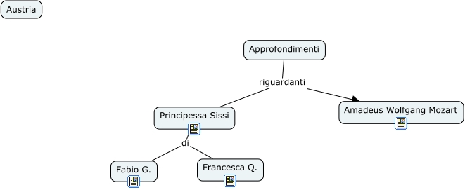 Questa Cmap, creata con IHMC CmapTools, contiene informazioni relative a: Austria Approfondimenti, Approfondimenti riguardanti Principessa Sissi, Approfondimenti riguardanti Amadeus Wolfgang Mozart, Principessa Sissi di Francesca Q., Principessa Sissi di Fabio G.
