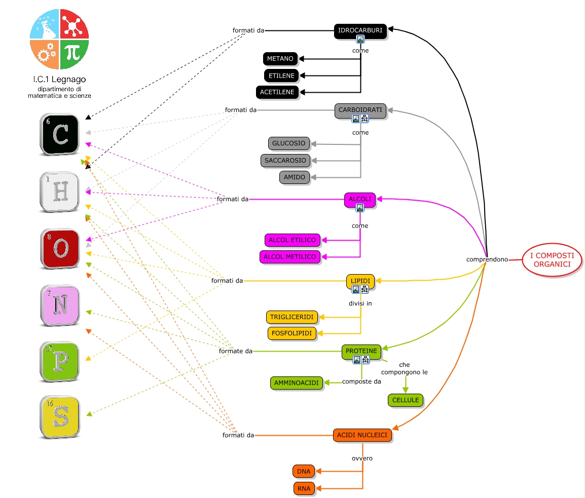 Questa Cmap, creata con IHMC CmapTools, contiene informazioni relative a: i composti organici, CARBOIDRATI come GLUCOSIO, IDROCARBURI come ETILENE, PROTEINE che compongono le CELLULE, LIPIDI formati da, IDROCARBURI come METANO, LIPIDI divisi in TRIGLICERIDI, CARBOIDRATI formati da, ACIDI NUCLEICI formati da, PROTEINE formate da, ALCOLI formati da, CARBOIDRATI come AMIDO, IDROCARBURI formati da, ACIDI NUCLEICI formati da, PROTEINE formate da, IDROCARBURI come ACETILENE, PROTEINE formate da, CARBOIDRATI formati da, I COMPOSTI ORGANICI comprendono PROTEINE, ACIDI NUCLEICI ovvero DNA, ALCOLI come ALCOL METILICO