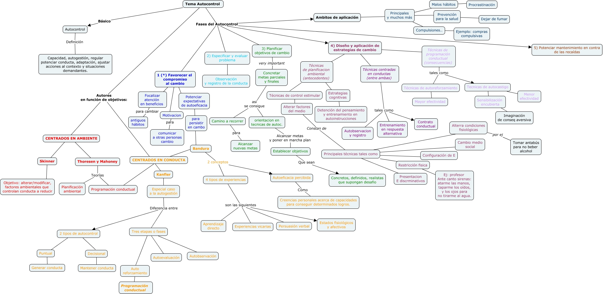 Este Cmap, tiene información relacionada con: Sin Título 1, Principales técnicas tales como ???? Restricción fisica, 1 (*) Favorecer el compromiso al cambio ???? Motivacion, Camino a recorrer para Alcanzar nuevas metas, Especial caso a la autogestión Diferencia entre 2 tipos de autocontrol, Tema Autocontrol Autores en función de objetivos: Skinner, 4) Diseño y aplicación de estrategias de cambio ???? Técnicas de planificacion ambiental (antecedentes), Decisional Mant Mantener conducta, Kanfler ???? Especial caso a la autogestión, Compulsiones.. ???? Ejemplo: compras compulsivas, Motivacion para comunicar a otras personas cambio, 4 tipos de experiencias son las siguientes Experiencias vicarias, Principales técnicas tales como ???? Alterra condiciones fisiológicas, Principales técnicas tales como ???? Cambio medio social, Técnicas de planificacion ambiental (antecedentes) ???? Estrategias cognitivas, 4 tipos de experiencias son las siguientes Aprendizaje directo, Técnicas centradas en conductas (entre ambas) tales como Autobservacion y registro, Tres etapas o fases ???? Autoevaluación, Restricción fisica ???? Ej: profesor Ante canto sirenas: atarme las manos, taparme los oídos, y los ojos para no tirarme al agua., Tema Autocontrol Fases del Autocontrol 4) Diseño y aplicación de estrategias de cambio, Sensibilización encubierta ???? Imaginación de conseq aversiva