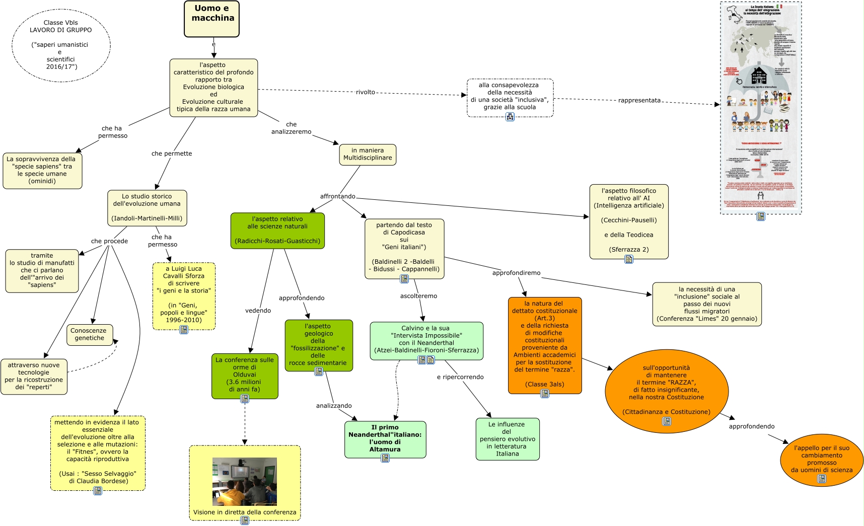 Questa Cmap, creata con IHMC CmapTools, contiene informazioni relative a: Evoluzione Ed Integrazione 2016-17 5bls, l'aspetto caratteristico del profondo rapporto tra Evoluzione biologica ed Evoluzione culturale tipica della razza umana rivolto alla consapevolezza della necessità di una società "inclusiva", grazie alla scuola, la natura del dettato costituzionale (Art.3) e della richiesta di modifiche costituzionali proveniente da Ambienti accademici per la sostituzione del termine "razza". (Classe 3als) sull'opportunità di mantenere il termine "RAZZA", di fatto insignificante, nella nostra Costituzione (Cittadinanza e Costituzione), attraverso nuove tecnologie per la ricostruzione dei "reperti" Conoscenze genetiche, Lo studio storico dell'evoluzione umana (Iandoli-Martinelli-Milli) che procede mettendo in evidenza il lato essenziale dell'evoluzione oltre alla selezione e alle mutazioni: il "Fitnes", ovvero la capacità riproduttiva (Usai : "Sesso Selvaggio" di Claudia Bordese), sull'opportunità di mantenere il termine "RAZZA", di fatto insignificante, nella nostra Costituzione (Cittadinanza e Costituzione) approfondendo l'appello per il suo cambiamento promosso da uomini di scienza, Lo studio storico dell'evoluzione umana (Iandoli-Martinelli-Milli) che procede attraverso nuove tecnologie per la ricostruzione dei "reperti", Lo studio storico dell'evoluzione umana (Iandoli-Martinelli-Milli) che ha permesso a Luigi Luca Cavalli Sforza di scrivere "i geni e la storia" (in "Geni, popoli e lingue" 1996-2010), Calvino e la sua "Intervista Impossibile" con il Neanderthal (Atzei-Baldinelli-Fioroni-Sferrazza) e ripercorrendo Le influenze del pensiero evolutivo in letteratura Italiana, Lo studio storico dell'evoluzione umana (Iandoli-Martinelli-Milli) che procede tramite lo studio di manufatti che ci parlano dell'"arrivo dei "sapiens", in maniera Multidisciplinare affrontando partendo dal testo di Capodicasa sui "Geni italiani") (Baldinelli 2 -Baldelli - Bidussi - Cappannelli), in maniera Multidisciplinare affrontando l'aspetto relativo alle scienze naturali (Radicchi-Rosati-Guasticchi), Uomo e macchina è l'aspetto caratteristico del profondo rapporto tra Evoluzione biologica ed Evoluzione culturale tipica della razza umana, l'aspetto caratteristico del profondo rapporto tra Evoluzione biologica ed Evoluzione culturale tipica della razza umana che ha permesso La sopravvivenza della "specie sapiens" tra le specie umane (ominidi), in maniera Multidisciplinare affrontando l'aspetto filosofico relativo all' AI (Intelligenza artificiale) (Cecchini-Pauselli) e della Teodicea (Sferrazza 2), La conferenza sulle orme di Olduvai (3.6 milioni di anni fa) Visione in diretta della conferenza, partendo dal testo di Capodicasa sui "Geni italiani") (Baldinelli 2 -Baldelli - Bidussi - Cappannelli) approfondiremo la natura del dettato costituzionale (Art.3) e della richiesta di modifiche costituzionali proveniente da Ambienti accademici per la sostituzione del termine "razza". (Classe 3als), Lo studio storico dell'evoluzione umana (Iandoli-Martinelli-Milli) che procede Conoscenze genetiche, Calvino e la sua "Intervista Impossibile" con il Neanderthal (Atzei-Baldinelli-Fioroni-Sferrazza) Il primo Neanderthal"italiano: l'uomo di Altamura, partendo dal testo di Capodicasa sui "Geni italiani") (Baldinelli 2 -Baldelli - Bidussi - Cappannelli) ascolteremo Calvino e la sua "Intervista Impossibile" con il Neanderthal (Atzei-Baldinelli-Fioroni-Sferrazza), l'aspetto caratteristico del profondo rapporto tra Evoluzione biologica ed Evoluzione culturale tipica della razza umana che analizzeremo in maniera Multidisciplinare
