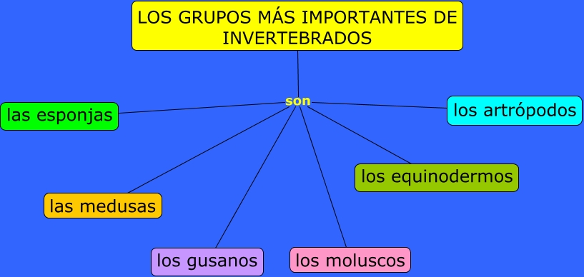 Este Cmap, tiene información relacionada con: Los grupos de invertebrados, LOS GRUPOS MÁS IMPORTANTES DE INVERTEBRADOS son las medusas, LOS GRUPOS MÁS IMPORTANTES DE INVERTEBRADOS son los equinodermos, LOS GRUPOS MÁS IMPORTANTES DE INVERTEBRADOS son los moluscos, LOS GRUPOS MÁS IMPORTANTES DE INVERTEBRADOS son los gusanos, LOS GRUPOS MÁS IMPORTANTES DE INVERTEBRADOS son los artrópodos, LOS GRUPOS MÁS IMPORTANTES DE INVERTEBRADOS son las esponjas
