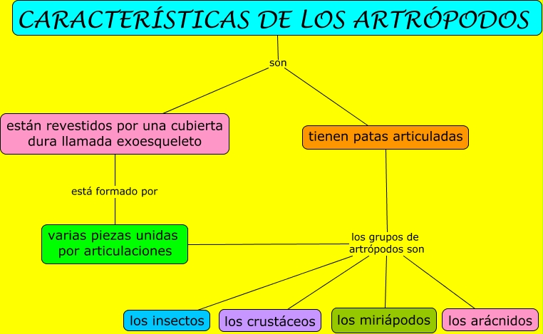 Este Cmap, tiene información relacionada con: Características de los artrópodos, varias piezas unidas por articulaciones los grupos de artrópodos son los arácnidos, varias piezas unidas por articulaciones los grupos de artrópodos son los crustáceos, varias piezas unidas por articulaciones los grupos de artrópodos son los miriápodos, CARACTERÍSTICAS DE LOS ARTRÓPODOS son tienen patas articuladas, tienen patas articuladas los grupos de artrópodos son los insectos, tienen patas articuladas los grupos de artrópodos son los crustáceos, varias piezas unidas por articulaciones los grupos de artrópodos son los insectos, tienen patas articuladas los grupos de artrópodos son los arácnidos, CARACTERÍSTICAS DE LOS ARTRÓPODOS son están revestidos por una cubierta dura llamada exoesqueleto, están revestidos por una cubierta dura llamada exoesqueleto está formado por varias piezas unidas por articulaciones, tienen patas articuladas los grupos de artrópodos son los miriápodos