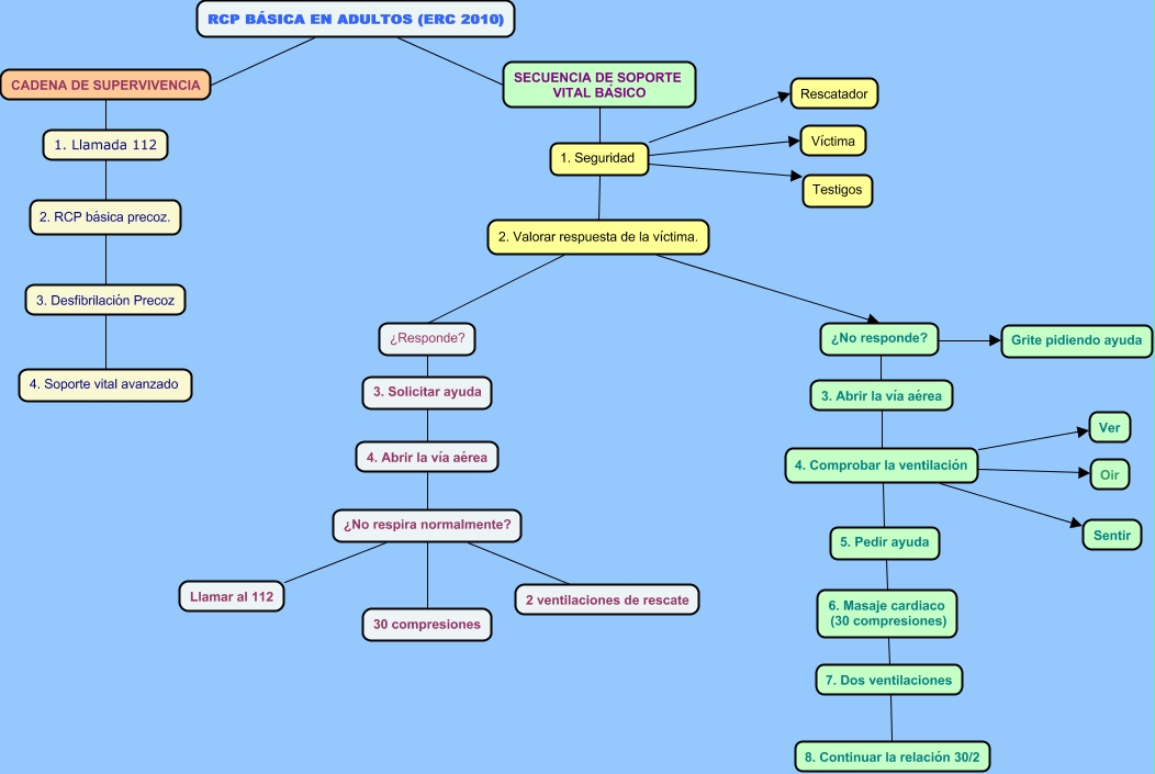 Este Cmap, tiene información relacionada con: RCP básico Moodle, 2. RCP básica precoz. 3. Desfibrilación Precoz, 4. Abrir la vía aérea ¿No respira normalmente?, ¿No responde? 3. Abrir la vía aérea, 1. Llamada 112 2. RCP básica precoz., 4. Comprobar la ventilación Oir, ¿No respira normalmente? 30 compresiones, 3. Desfibrilación Precoz 4. Soporte vital avanzado, 3. Solicitar ayuda 4. Abrir la vía aérea, 2. Valorar respuesta de la víctima. ¿No responde?, 3. Abrir la vía aérea 4. Comprobar la ventilación, 4. Comprobar la ventilación 5. Pedir ayuda, 1. Seguridad Víctima, ¿Responde? 3. Solicitar ayuda, 1. Seguridad Rescatador, RCP BÁSICA EN ADULTOS (ERC 2010) CADENA DE SUPERVIVENCIA, SECUENCIA DE SOPORTE VITAL BÁSICO 1. Seguridad, ¿No respira normalmente? Llamar al 112, ¿No respira normalmente? 2 ventilaciones de rescate, 7. Dos ventilaciones 8. Continuar la relación 30/2, CADENA DE SUPERVIVENCIA 1. Llamada 112