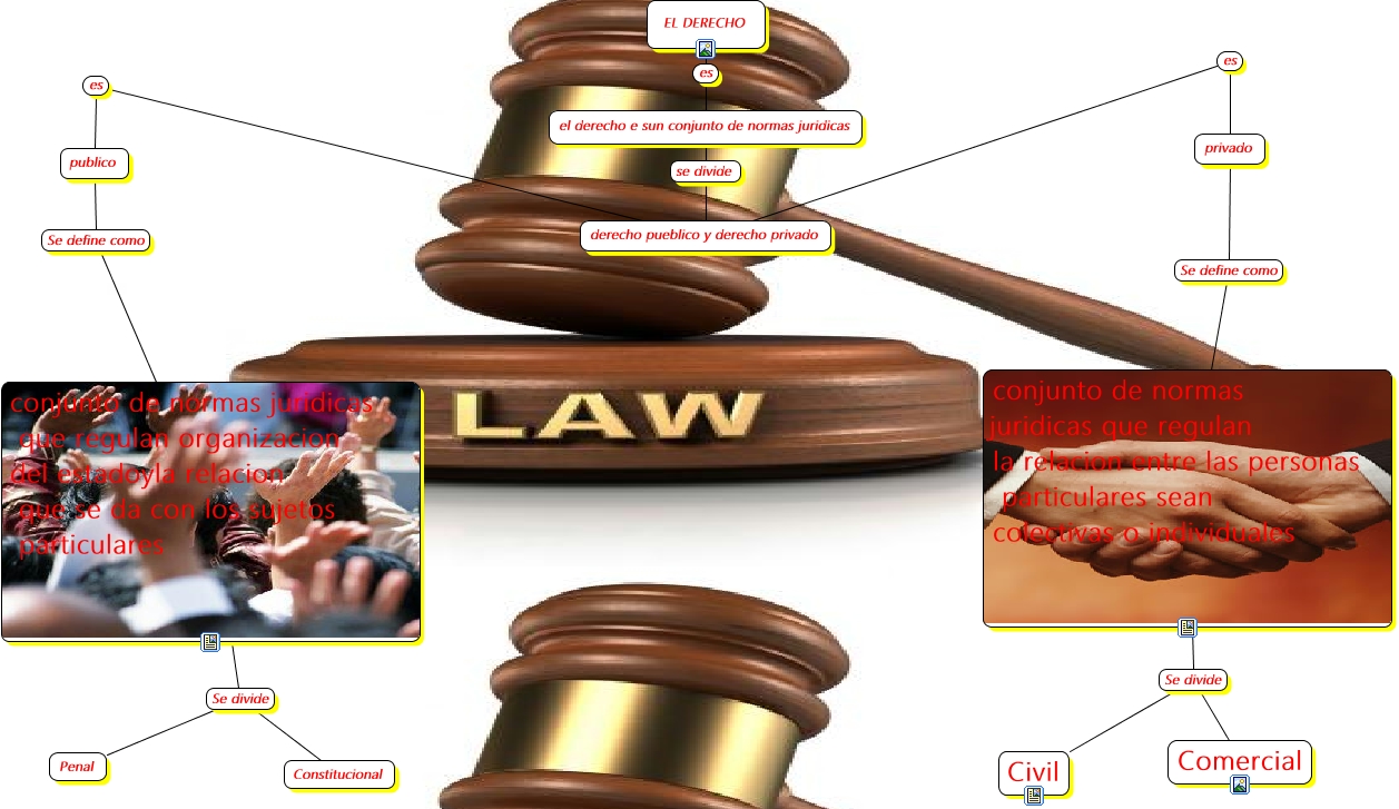 Este Cmap, tiene información relacionada con: El derecho, el derecho e sun conjunto de normas juridicas se divide derecho pueblico y derecho privado, derecho pueblico y derecho privado es publico, publico Se define como conjunto de normas juridicas que regulan organizacion del estadoyla relacion que se da con los sujetos particulares, EL DERECHO es el derecho e sun conjunto de normas juridicas, derecho pueblico y derecho privado es privado, conjunto de normas juridicas que regulan organizacion del estadoyla relacion que se da con los sujetos particulares Se divide Constitucional, privado Se define como conjunto de normas juridicas que regulan la relacion entre las personas particulares sean colectivas o individuales, conjunto de normas juridicas que regulan la relacion entre las personas particulares sean colectivas o individuales Se divide Comercial, conjunto de normas juridicas que regulan organizacion del estadoyla relacion que se da con los sujetos particulares Se divide Penal, conjunto de normas juridicas que regulan la relacion entre las personas particulares sean colectivas o individuales Se divide Civil