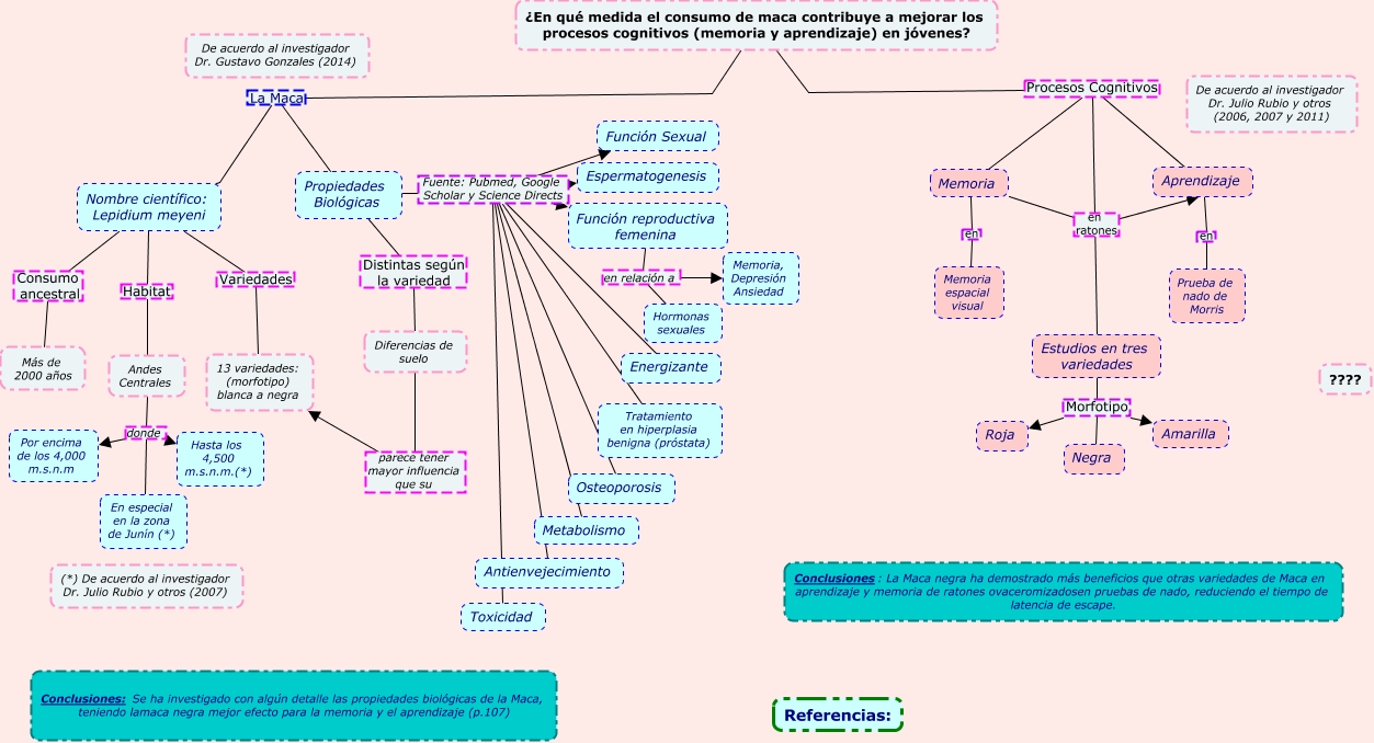 Este Cmap, tiene información relacionada con: En qué medida el consumo de maca contribuye a mejorar los procesos cognitivos (memoria y aprendizaje) en jóvenes.cmap, Estudios en tres variedades Morfotipo Roja, Función reproductiva femenina en relación a Memoria, Depresión Ansiedad, Propiedades Biológicas Fuente: Pubmed, Google Scholar y Science Directs Osteoporosis, ¿En qué medida el consumo de maca contribuye a mejorar los procesos cognitivos (memoria y aprendizaje) en jóvenes? Procesos Cognitivos Memoria, ¿En qué medida el consumo de maca contribuye a mejorar los procesos cognitivos (memoria y aprendizaje) en jóvenes? La Maca Nombre científico: Lepidium meyeni, Propiedades Biológicas Fuente: Pubmed, Google Scholar y Science Directs Energizante, Propiedades Biológicas Distintas según la variedad Diferencias de suelo, Nombre científico: Lepidium meyeni Consumo ancestral Más de 2000 años, Propiedades Biológicas Fuente: Pubmed, Google Scholar y Science Directs Toxicidad, Nombre científico: Lepidium meyeni Variedades 13 variedades: (morfotipo) blanca a negra, ¿En qué medida el consumo de maca contribuye a mejorar los procesos cognitivos (memoria y aprendizaje) en jóvenes? La Maca Propiedades Biológicas, Propiedades Biológicas Fuente: Pubmed, Google Scholar y Science Directs Metabolismo, Estudios en tres variedades Morfotipo Amarilla, Aprendizaje en Prueba de nado de Morris, Memoria en ratones Aprendizaje, Diferencias de suelo parece tener mayor influencia que su 13 variedades: (morfotipo) blanca a negra, Andes Centrales donde Por encima de los 4,000 m.s.n.m, Propiedades Biológicas Fuente: Pubmed, Google Scholar y Science Directs Función Sexual, Propiedades Biológicas Fuente: Pubmed, Google Scholar y Science Directs Espermatogenesis, Memoria en Memoria espacial visual