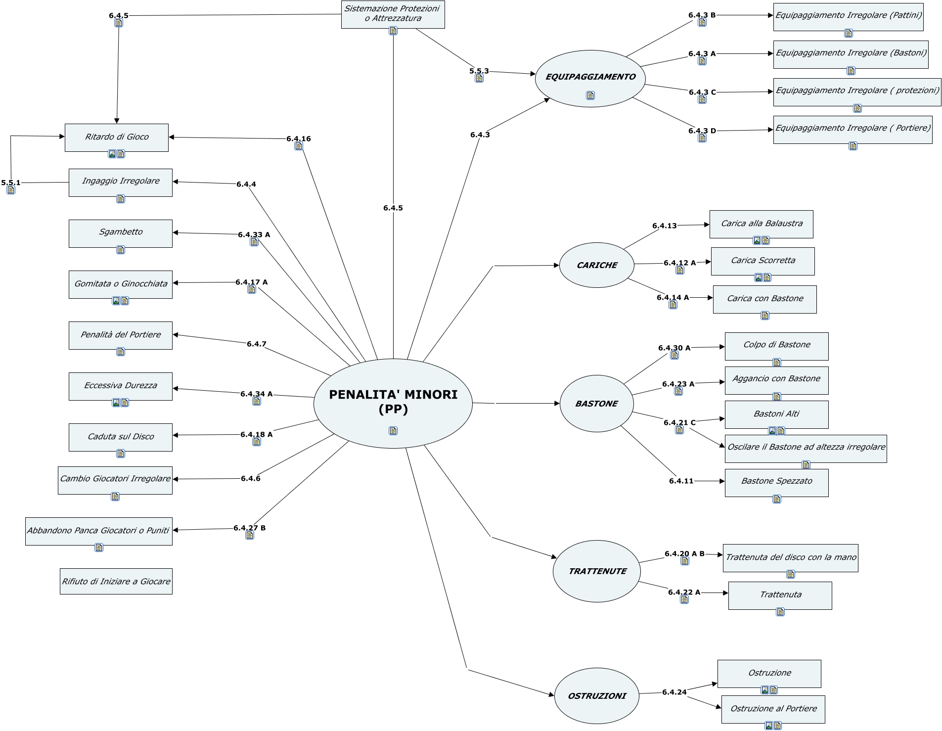 Questa Cmap, creata con IHMC CmapTools, contiene informazioni relative a: penalita minori, EQUIPAGGIAMENTO 6.4.3 A Equipaggiamento Irregolare (Bastoni), PENALITA' MINORI (PP) TRATTENUTE, BASTONE 6.4.23 A Aggancio con Bastone, BASTONE 6.4.30 A Colpo di Bastone, Ingaggio Irregolare 5.5.1 Ritardo di Gioco, EQUIPAGGIAMENTO 6.4.3 B Equipaggiamento Irregolare (Pattini), PENALITA' MINORI (PP) CARICHE, BASTONE 6.4.21 C Bastoni Alti, TRATTENUTE 6.4.22 A Trattenuta, PENALITA' MINORI (PP) 6.4.6 Cambio Giocatori Irregolare, PENALITA' MINORI (PP) 6.4.33 A Sgambetto, PENALITA' MINORI (PP) 6.4.4 Ingaggio Irregolare, PENALITA' MINORI (PP) 6.4.3 EQUIPAGGIAMENTO, PENALITA' MINORI (PP) 6.4.18 A Caduta sul Disco, BASTONE 6.4.11 Bastone Spezzato, PENALITA' MINORI (PP) 6.4.5 Sistemazione Protezioni o Attrezzatura, CARICHE 6.4.14 A Carica con Bastone, CARICHE 6.4.12 A Carica Scorretta, PENALITA' MINORI (PP) 6.4.7 Penalità del Portiere, Sistemazione Protezioni o Attrezzatura 6.4.5 Ritardo di Gioco