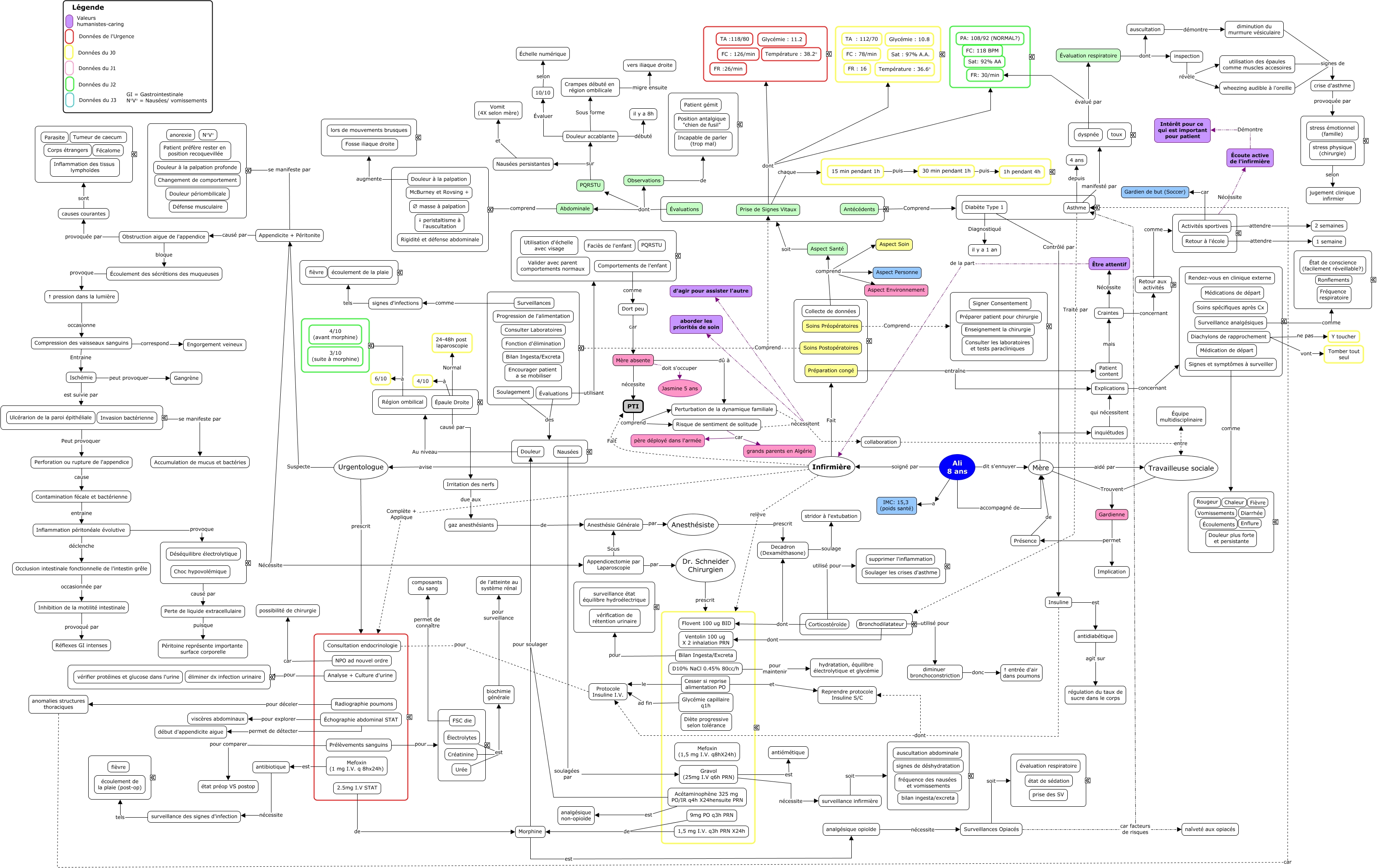 Cette carte de concepts créée avec IHMC CmapTools traite de: TRAVAIL 1626 apsic 5, Risque de sentiment de solitude nécessitent aborder les priorités de soin, 2.5mg I.V STAT de Morphine, Bilan Ingesta/Excreta pour ????, PQRSTU sur Nausées persistantes, Urgentologue Suspecte Appendicite + Péritonite, PTI comprend Risque de sentiment de solitude, surveillance infirmière soit ????, Acétaminophène 325 mg PO/IR q4h X24hensuite PRN est analgésique non-opioïde, Évaluation respiratoire dont auscultation, Soulagement des ????, NPO ad nouvel ordre car possibilité de chirurgie, ???? Nécéssite Écoute active de l'infirmière, ???? Peut provoquer Perforation ou rupture de l'appendice, Nausées soulagées par Gravol (25mg I.V q6h PRN), Perturbation de la dynamique familiale nécessitent d'agir pour assister l'autre, surveillance des signes d'infection tels ????, Perturbation de la dynamique familiale nécessitent collaboration, Prise de Signes Vitaux chaque ????, Infirmière Fait PTI, Créatinine est biochimie générale