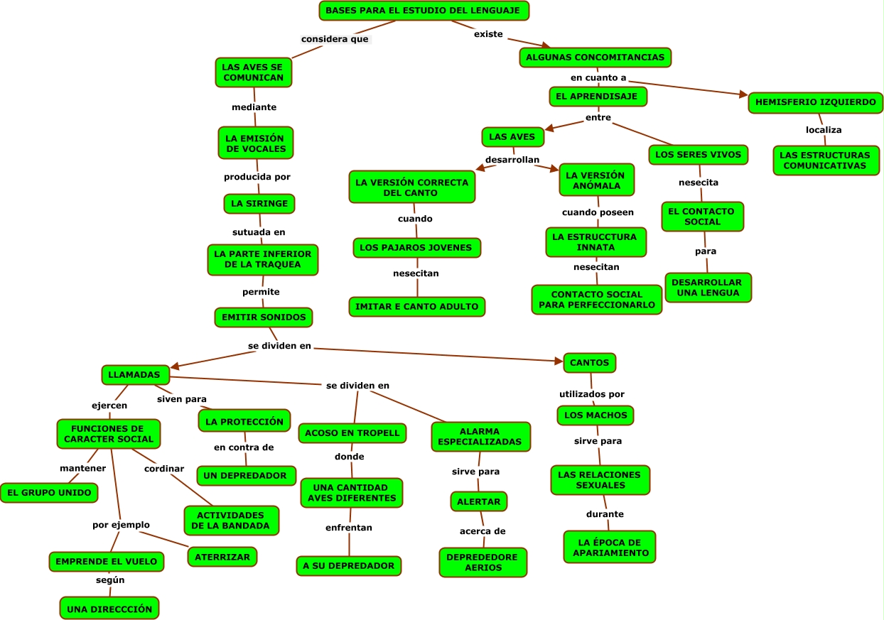 Este Cmap, tiene información relacionada con: TEXTO 4, HEMISFERIO IZQUIERDO localiza LAS ESTRUCTURAS COMUNICATIVAS, ACOSO EN TROPELL donde UNA CANTIDAD AVES DIFERENTES, FUNCIONES DE CARACTER SOCIAL por ejemplo ATERRIZAR, LA PARTE INFERIOR DE LA TRAQUEA permite EMITIR SONIDOS, ALGUNAS CONCOMITANCIAS en cuanto a EL APRENDISAJE, CANTOS utilizados por LOS MACHOS, ALARMA ESPECIALIZADAS sirve para ALERTAR, EMITIR SONIDOS se dividen en LLAMADAS, ACOSO EN TROPELL se dividen en ALARMA ESPECIALIZADAS, UNA CANTIDAD AVES DIFERENTES enfrentan A SU DEPREDADOR, EMPRENDE EL VUELO según UNA DIRECCCIÓN, FUNCIONES DE CARACTER SOCIAL por ejemplo EMPRENDE EL VUELO, FUNCIONES DE CARACTER SOCIAL cordinar ACTIVIDADES DE LA BANDADA, EMITIR SONIDOS se dividen en CANTOS, LOS MACHOS sirve para LAS RELACIONES SEXUALES, FUNCIONES DE CARACTER SOCIAL mantener EL GRUPO UNIDO, LLAMADAS siven para LA PROTECCIÓN, ALGUNAS CONCOMITANCIAS en cuanto a HEMISFERIO IZQUIERDO, LAS RELACIONES SEXUALES durante LA ÉPOCA DE APARIAMIENTO, LAS AVES SE COMUNICAN mediante LA EMISIÓN DE VOCALES