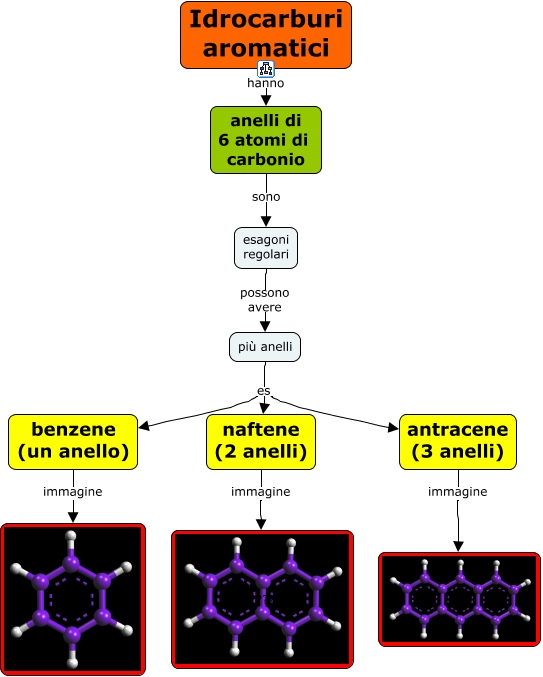 Questa Cmap, creata con IHMC CmapTools, contiene informazioni relative a: 9.3.1.5 Idrocarburi aromatici, più anelli es antracene (3 anelli), anelli di 6 atomi di carbonio sono esagoni regolari, più anelli es benzene (un anello), più anelli es naftene (2 anelli), benzene (un anello) immagine ????, Idrocarburi aromatici hanno anelli di 6 atomi di carbonio, esagoni regolari possono avere più anelli, naftene (2 anelli) immagine ????, antracene (3 anelli) immagine ????