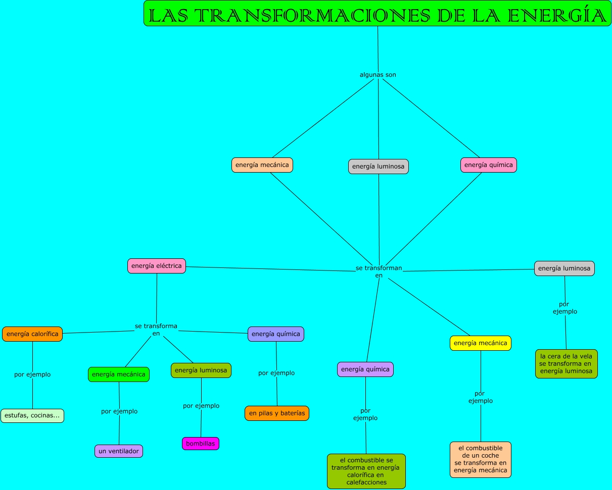 Este Cmap, tiene información relacionada con: Las transformaciones de la energía, energía química por ejemplo el combustible se transforma en energía calorífica en calefacciones, LAS TRANSFORMACIONES DE LA ENERGÍA algunas son energía mecánica, energía luminosa se transforman en energía eléctrica, energía química por ejemplo en pilas y baterías, energía mecánica se transforman en energía eléctrica, energía luminosa se transforman en energía mecánica, energía eléctrica se transforma en energía calorífica, energía mecánica se transforman en energía mecánica, LAS TRANSFORMACIONES DE LA ENERGÍA algunas son energía química, energía luminosa por ejemplo la cera de la vela se transforma en energía luminosa, energía luminosa se transforman en energía eléctrica, energía mecánica por ejemplo un ventilador, energía luminosa se transforman en energía mecánica, energía eléctrica se transforma en energía química, energía química se transforman en energía eléctrica, energía eléctrica se transforma en energía luminosa, energía calorífica por ejemplo estufas, cocinas..., energía eléctrica se transforma en energía mecánica, energía química se transforman en energía mecánica, energía química se transforman en energía mecánica
