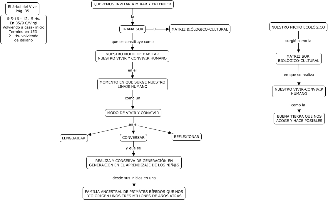 Este Cmap, tiene información relacionada con: Invitan con el Árbol del Vivir a mirar y entender, MODO DE VIVIR Y CONVIVIR en el LENGUAJEAR, TRAMA SOR que se constituye como NUESTRO MODO DE HABITAR NUESTRO VIVIR Y CONVIVIR HUMANO, NUESTRO VIVIR-CONVIVIR HUMANO como la BUENA TIERRA QUE NOS ACOGE Y HACE POSIBLES, NUESTRO MODO DE HABITAR NUESTRO VIVIR Y CONVIVIR HUMANO en el MOMENTO EN QUE SURGE NUESTRO LINAJE HUMANO, MATRIZ SOR BIOLÒGICO-CULTURAL en que se realiza NUESTRO VIVIR-CONVIVIR HUMANO, QUEREMOS INVITAR A MIRAR Y ENTENDER la TRAMA SOR, TRAMA SOR 0 MATRIZ BIÓLOGICO-CULTURAL, REALIZA Y CONSERVA DE GENERACIÒN EN GENERACIÓN EN EL APRENDIZAJE DE LOS NIÑ@S desde sus inicios en una FAMILIA ANCESTRAL DE PRIMÁTES BÍPEDOS QUE NOS DIO ORIGEN UNOS TRES MILLONES DE AÑOS ATRÀS, MODO DE VIVIR Y CONVIVIR en el CONVERSAR, MOMENTO EN QUE SURGE NUESTRO LINAJE HUMANO como un MODO DE VIVIR Y CONVIVIR, MODO DE VIVIR Y CONVIVIR en el REFLEXIONAR, CONVERSAR y que se REALIZA Y CONSERVA DE GENERACIÒN EN GENERACIÓN EN EL APRENDIZAJE DE LOS NIÑ@S, NUESTRO NICHO ECOLÒGICO surgió como la MATRIZ SOR BIOLÒGICO-CULTURAL