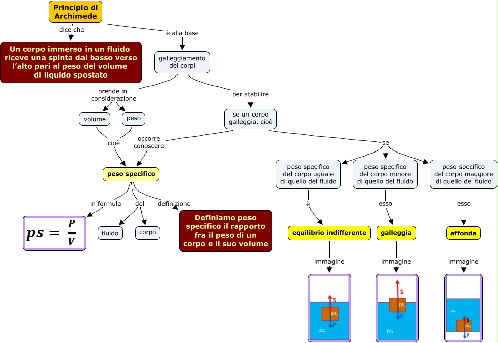 Questa Cmap, creata con IHMC CmapTools, contiene informazioni relative a: Principio di archimede, galleggiamento dei corpi prende in considerazione peso, Principio di Archimede è alla base galleggiamento dei corpi, peso specifico in formula, peso specifico del corpo minore di quello del fluido esso galleggia, peso specifico definizione Definiamo peso specifico il rapporto fra il peso di un corpo e il suo volume, se un corpo galleggia, cioè se peso specifico del corpo minore di quello del fluido, peso specifico del corpo uguale di quello del fluido è equilibrio indifferente, peso specifico del fluido, peso specifico del corpo maggiore di quello del fluido esso affonda, se un corpo galleggia, cioè occorre conoscere peso specifico, affonda immagine, galleggia immagine, se un corpo galleggia, cioè se peso specifico del corpo uguale di quello del fluido, volume cioè peso specifico, galleggiamento dei corpi prende in considerazione volume, se un corpo galleggia, cioè se peso specifico del corpo maggiore di quello del fluido, galleggiamento dei corpi per stabilire se un corpo galleggia, cioè, equilibrio indifferente immagine, Principio di Archimede dice che Un corpo immerso in un fluido riceve una spinta dal basso verso l’alto pari al peso del volume di liquido spostato, peso specifico del corpo