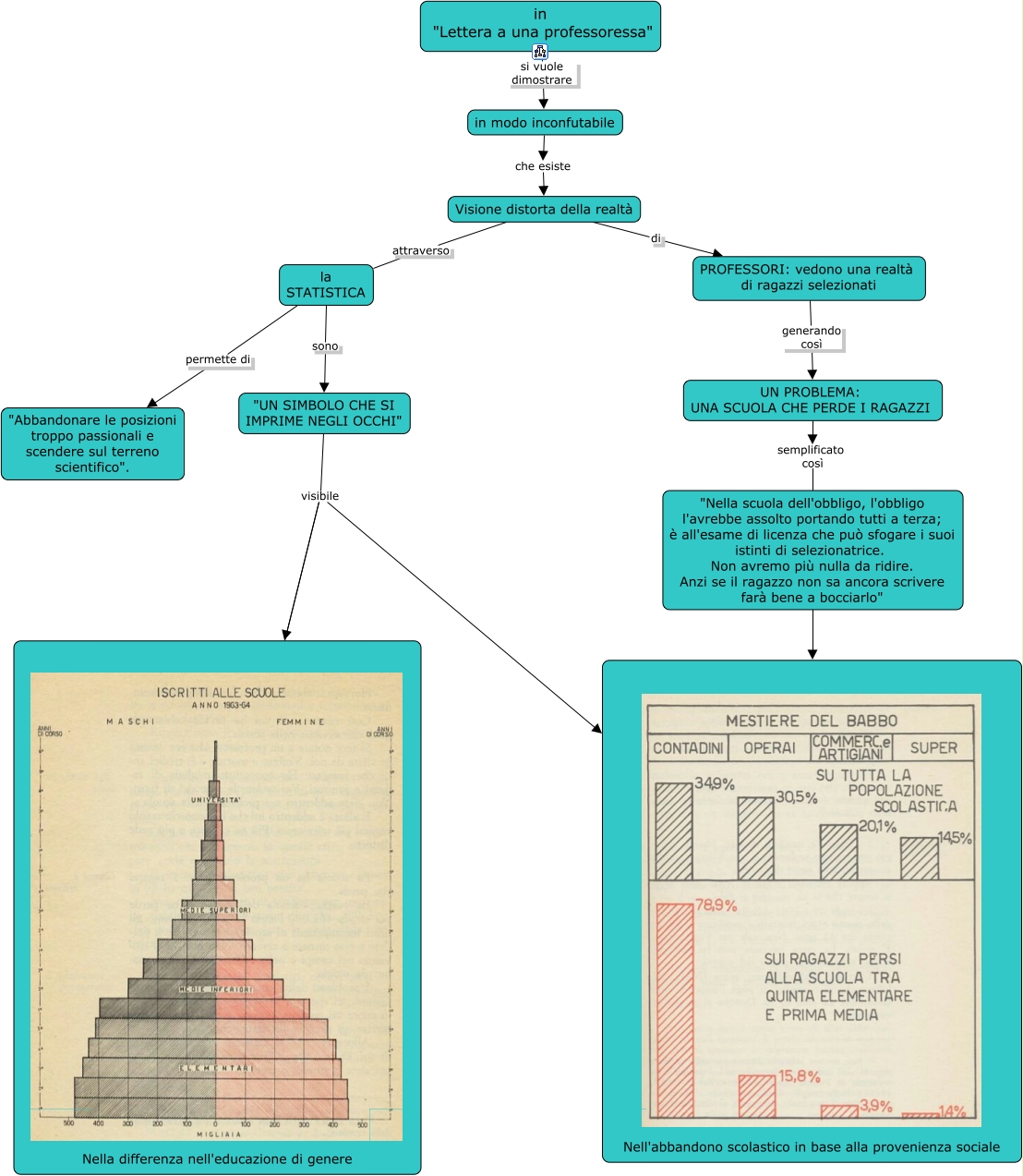 Questa Cmap, creata con IHMC CmapTools, contiene informazioni relative a: Lettera ad una professoressa-statistica (Luchini), "UN SIMBOLO CHE SI IMPRIME NEGLI OCCHI" visibile Nella differenza nell'educazione di genere, in modo inconfutabile che esiste Visione distorta della realtà, Visione distorta della realtà di PROFESSORI: vedono una realtà di ragazzi selezionati, UN PROBLEMA: UNA SCUOLA CHE PERDE I RAGAZZI semplificato così "Nella scuola dell'obbligo, l'obbligo l'avrebbe assolto portando tutti a terza; è all'esame di licenza che può sfogare i suoi istinti di selezionatrice. Non avremo più nulla da ridire. Anzi se il ragazzo non sa ancora scrivere farà bene a bocciarlo", PROFESSORI: vedono una realtà di ragazzi selezionati generando così UN PROBLEMA: UNA SCUOLA CHE PERDE I RAGAZZI, "Nella scuola dell'obbligo, l'obbligo l'avrebbe assolto portando tutti a terza; è all'esame di licenza che può sfogare i suoi istinti di selezionatrice. Non avremo più nulla da ridire. Anzi se il ragazzo non sa ancora scrivere farà bene a bocciarlo" Nell'abbandono scolastico in base alla provenienza sociale, "UN SIMBOLO CHE SI IMPRIME NEGLI OCCHI" visibile Nell'abbandono scolastico in base alla provenienza sociale, Visione distorta della realtà attraverso la STATISTICA, la STATISTICA sono "UN SIMBOLO CHE SI IMPRIME NEGLI OCCHI", "UN SIMBOLO CHE SI IMPRIME NEGLI OCCHI" visibile Nella differenza nell'educazione di genere, in "Lettera a una professoressa" si vuole dimostrare in modo inconfutabile, la STATISTICA permette di "Abbandonare le posizioni troppo passionali e scendere sul terreno scientifico".