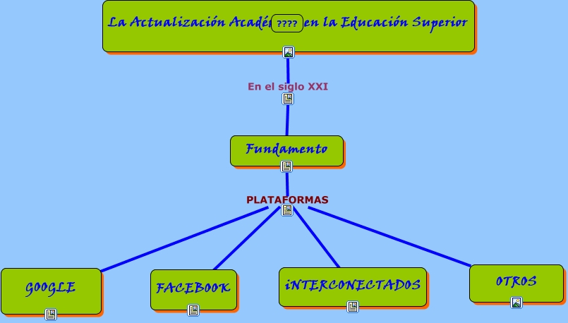 Este Cmap, tiene información relacionada con: Actualización Académica a distancia en el Nivel superior, Fundamento PLATAFORMAS FACEBOOK, Fundamento PLATAFORMAS GOOGLE, Fundamento PLATAFORMAS OTROS, ???? En el siglo XXI Fundamento, Fundamento PLATAFORMAS iNTERCONECTADOS