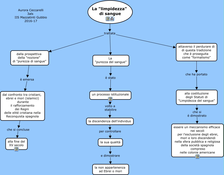Questa Cmap, creata con IHMC CmapTools, contiene informazioni relative a: Limpidezza di sangue, la sua qualità e dimostrare la non appartenenza ad Ebrei o mori, La "limpidezza" di sangue trattata dalla prospettiva della "nozione" di "purezza di sangue", La "purezza del sangue" è stato un processo istituzionale, La "limpidezza" di sangue trattata attaverso il perdurare di di questa tradizione che è proseguita come "formalismo", dalla prospettiva della "nozione" di "purezza di sangue" è emersa dal confronto tra cristiani, ebrei e mori (islamici) durante il rafforzamento dei Regni delle elité cristiana nella Reconquista spagnola, un processo istituzionale volto a stabilire la discendenza dell'individuo, attaverso il perdurare di di questa tradizione che è proseguita come "formalismo" che ha portato alla costituzione degli Statuti di "Limpidezza del sangue", dal confronto tra cristiani, ebrei e mori (islamici) durante il rafforzamento dei Regni delle elité cristiana nella Reconquista spagnola che si concluse alla fine del XV secolo, alla costituzione degli Statuti di "Limpidezza del sangue" che si è dimostrato essere un meccanismo efficace nei secoli per l'esclusione degli ebrei, mori e loro discendendi nella sfera pubblica e religiosa della società spagnola compreso nelle colonie americane, la discendenza dell'individuo per controllare la sua qualità, La "limpidezza" di sangue trattata La "purezza del sangue"