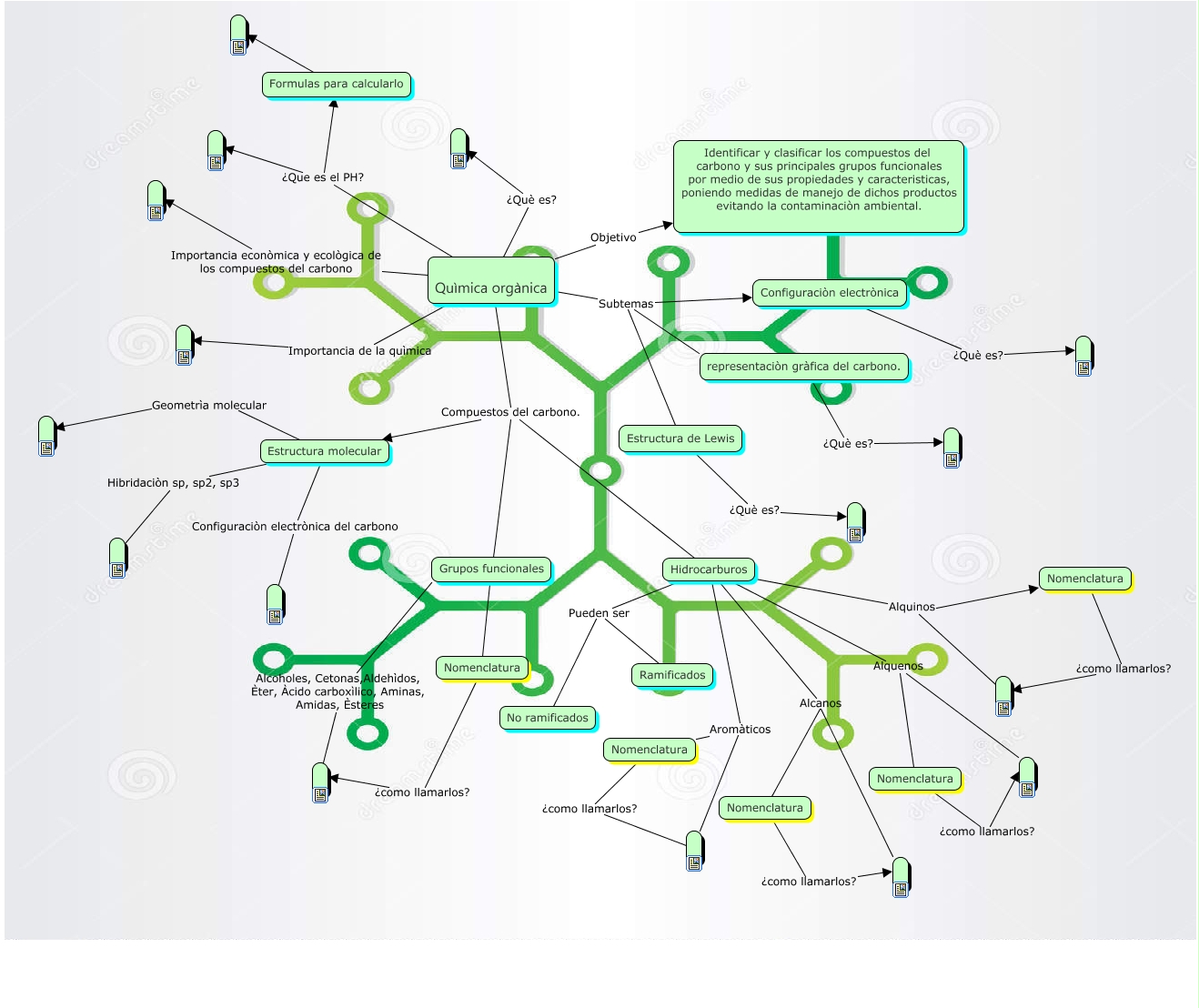 Este Cmap, tiene información relacionada con: Quìmica Orgànica, Quìmica orgànica Subtemas Configuraciòn electrònica, Formulas para calcularlo ????, Quìmica orgànica Objetivo Identificar y clasificar los compuestos del carbono y sus principales grupos funcionales por medio de sus propiedades y caracteristicas, poniendo medidas de manejo de dichos productos evitando la contaminaciòn ambiental., Hidrocarburos Alquenos, Nomenclatura ¿como llamarlos?, Nomenclatura ¿como llamarlos?, Grupos funcionales ???? Nomenclatura, Nomenclatura ¿como llamarlos?, Hidrocarburos Alquinos, Quìmica orgànica Compuestos del carbono. Hidrocarburos, Grupos funcionales Alcoholes, Cetonas,Aldehìdos, Èter, Àcido carboxìlico, Aminas, Amidas, Èsteres, representaciòn gràfica del carbono. ¿Què es?, Estructura molecular <math xmlns="http://www.w3.org/1998/Math/MathML"> <mrow> <mtext> Hibridaciòn sp, sp2, sp3 </mtext> </mrow> </math>, Quìmica orgànica Compuestos del carbono. Estructura molecular, Nomenclatura Aromàticos, Estructura de Lewis ¿Què es?, Quìmica orgànica ¿Que es el PH?, Nomenclatura Alcanos, Quìmica orgànica Compuestos del carbono. Grupos funcionales, Nomenclatura ¿como llamarlos?