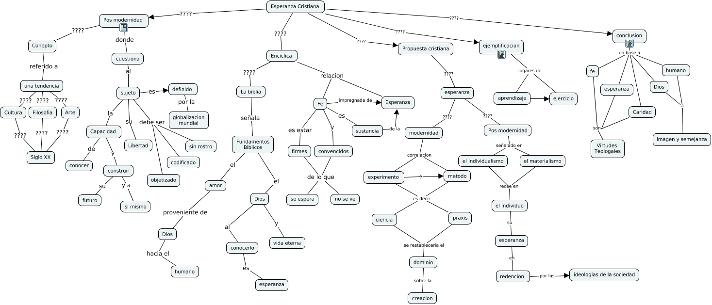 Este Cmap, tiene información relacionada con: ESperanza Matias Vasquez, aprendizaje ???? ejercicio, esperanza ???? Pos modernidad, el materialismo recae en el individuo, construir y a si mismo, conclusion en base a fe, Capacidad de conocer, sujeto debe ser sin rostro, esperanza ???? modernidad, convencidos de lo que se espera, una tendencia ???? Cultura, conclusion en base a Dios, humano a imagen y semejanza, conclusion en base a esperanza, sustancia de la Esperanza, sujeto la Capacidad, conocerlo es esperanza, una tendencia ???? Filosofia, firmes de lo que se espera, modernidad correlacion experimento, convencidos de lo que no se ve