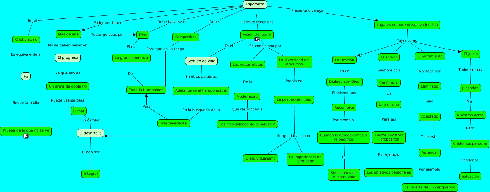 Este Cmap, tiene información relacionada con: EsperanzaDiazOrellana.cmap, Compartirse Para que asi la tenga Toda la Humanidad, El mal En cambio El desarrollo, La gran esperanza De Toda la Humanidad, Modernidad Que responden a Las necesidades de la industria, Esperanza Permite tener una Visión de futuro, La postmodernidad Surgen ideas como La importancia de lo privado, Cristo nos perdona Dandonos Salvación, Eliminado Sino Aceptado, Adelantarse al tiempo actual En la busqueda de lo Trascenedental, La postmodernidad Surgen ideas como El desarrollo, Nuestros actos Pero Cristo nos perdona, La postmodernidad Surgen ideas como El individualismo, Mas de una No se deben basar en El progreso, La Oración Es un Dialogo con Dios, Esperanza Debe Compartirse, Dialogo con Dios Él mismo nos Reconforta, Lugares de aprendizaje y ejercicio Tales como El Juicio, Trascenedental Para Toda la Humanidad, Lugares de aprendizaje y ejercicio Tales como El Actuar, Visión de futuro Se condiciona por La diversidad de discursos