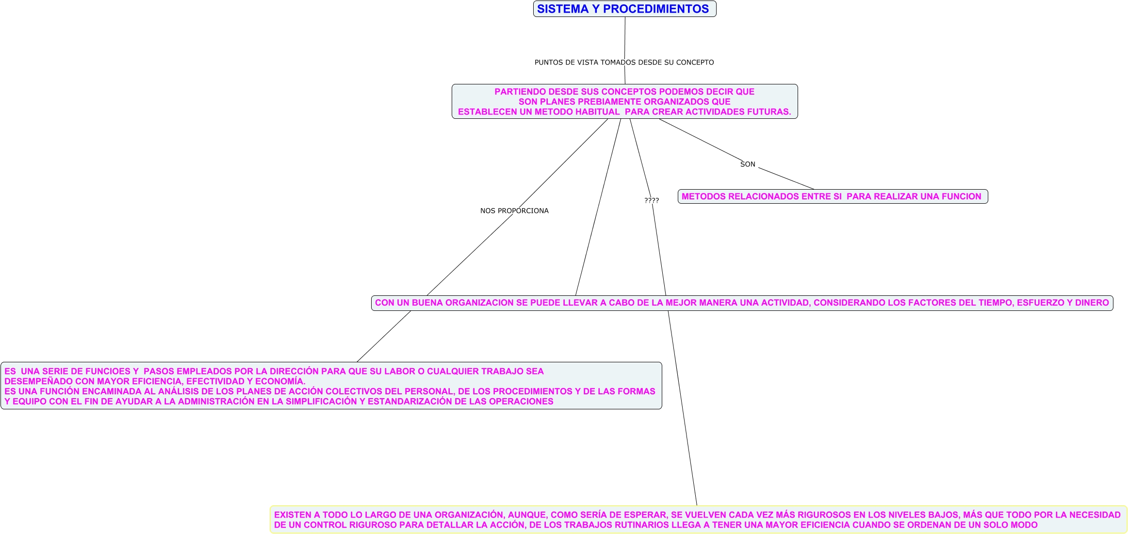 Este Cmap, tiene información relacionada con: sistema y procedimeinto, PARTIENDO DESDE SUS CONCEPTOS PODEMOS DECIR QUE SON PLANES PREBIAMENTE ORGANIZADOS QUE ESTABLECEN UN METODO HABITUAL PARA CREAR ACTIVIDADES FUTURAS. ???? EXISTEN A TODO LO LARGO DE UNA ORGANIZACIÓN, AUNQUE, COMO SERÍA DE ESPERAR, SE VUELVEN CADA VEZ MÁS RIGUROSOS EN LOS NIVELES BAJOS, MÁS QUE TODO POR LA NECESIDAD DE UN CONTROL RIGUROSO PARA DETALLAR LA ACCIÓN, DE LOS TRABAJOS RUTINARIOS LLEGA A TENER UNA MAYOR EFICIENCIA CUANDO SE ORDENAN DE UN SOLO MODO, PARTIENDO DESDE SUS CONCEPTOS PODEMOS DECIR QUE SON PLANES PREBIAMENTE ORGANIZADOS QUE ESTABLECEN UN METODO HABITUAL PARA CREAR ACTIVIDADES FUTURAS. SON METODOS RELACIONADOS ENTRE SI PARA REALIZAR UNA FUNCION, PARTIENDO DESDE SUS CONCEPTOS PODEMOS DECIR QUE SON PLANES PREBIAMENTE ORGANIZADOS QUE ESTABLECEN UN METODO HABITUAL PARA CREAR ACTIVIDADES FUTURAS. ???? CON UN BUENA ORGANIZACION SE PUEDE LLEVAR A CABO DE LA MEJOR MANERA UNA ACTIVIDAD, CONSIDERANDO LOS FACTORES DEL TIEMPO, ESFUERZO Y DINERO, SISTEMA Y PROCEDIMIENTOS PUNTOS DE VISTA TOMADOS DESDE SU CONCEPTO PARTIENDO DESDE SUS CONCEPTOS PODEMOS DECIR QUE SON PLANES PREBIAMENTE ORGANIZADOS QUE ESTABLECEN UN METODO HABITUAL PARA CREAR ACTIVIDADES FUTURAS., PARTIENDO DESDE SUS CONCEPTOS PODEMOS DECIR QUE SON PLANES PREBIAMENTE ORGANIZADOS QUE ESTABLECEN UN METODO HABITUAL PARA CREAR ACTIVIDADES FUTURAS. NOS PROPORCIONA ES UNA SERIE DE FUNCIOES Y PASOS EMPLEADOS POR LA DIRECCIÓN PARA QUE SU LABOR O CUALQUIER TRABAJO SEA DESEMPEÑADO CON MAYOR EFICIENCIA, EFECTIVIDAD Y ECONOMÍA. ES UNA FUNCIÓN ENCAMINADA AL ANÁLISIS DE LOS PLANES DE ACCIÓN COLECTIVOS DEL PERSONAL, DE LOS PROCEDIMIENTOS Y DE LAS FORMAS Y EQUIPO CON EL FIN DE AYUDAR A LA ADMINISTRACIÓN EN LA SIMPLIFICACIÓN Y ESTANDARIZACIÓN DE LAS OPERACIONES