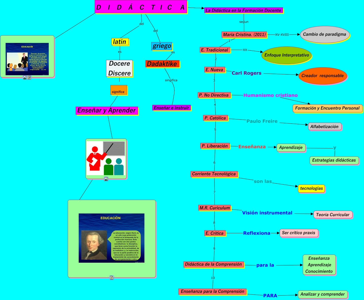 Este Cmap, tiene información relacionada con: mapita, E. Tradicional 2 E. Nueva, latin es Docere Discere, P. No Directiva 4 P. Católica, Enseñar y Aprender, griego es Dadaktike, P. Católica 5 P. Liberación, Enseñanza para la Comprensión PARA Analizar y comprender, E. Critica Reflexiona Ser crítico praxis, P. Católica Paulo Freire Alfabetización, María Cristina. (2011) 1 E. Tradicional, Dadaktike singifica Enseñar e instruir, D I D Á C T I C A ????, E. Critica 9 Didáctica de la Comprensión, ????, Corriente Tecnológica 7 M.R. Curiculum, M.R. Curiculum 8 E. Critica, P. Liberación 6 Corriente Tecnológica, D I D Á C T I C A del griego, Didáctica de la Comprensión para la Enseñanza Aprendizaje Conocimiento, María Cristina. (2011) XV-XVIII Cambio de paradigma