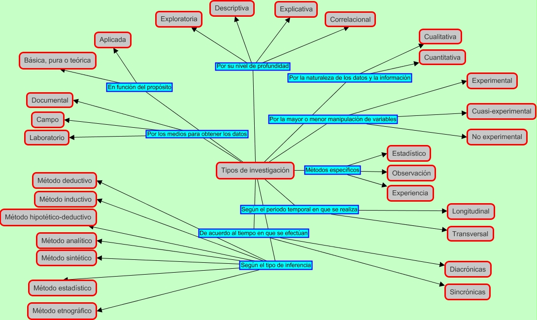 Este Cmap, tiene información relacionada con: Investigación, Tipos de investigación Según el tipo de inferencia Método inductivo, Tipos de investigación En función del propósito Básica, pura o teórica, Tipos de investigación Según el tipo de inferencia Método analítico, Tipos de investigación Por la naturaleza de los datos y la información Cuantitativa, Tipos de investigación Por la mayor o menor manipulación de variables Experimental, Tipos de investigación Métodos específicos Experiencia, Tipos de investigación Por su nivel de profundidad Correlacional, Tipos de investigación Según el periodo temporal en que se realiza Transversal, Tipos de investigación Por su nivel de profundidad Explicativa, Tipos de investigación Por su nivel de profundidad Exploratoria, Tipos de investigación En función del propósito Aplicada, Tipos de investigación Según el tipo de inferencia Método estadístico, Tipos de investigación Por la mayor o menor manipulación de variables Cuasi-experimental, Tipos de investigación Por los medios para obtener los datos Laboratorio, Tipos de investigación Según el tipo de inferencia Método etnográfico, Tipos de investigación Por los medios para obtener los datos Documental, Tipos de investigación Según el tipo de inferencia Método sintético, Tipos de investigación Métodos específicos Observación, Tipos de investigación Por su nivel de profundidad Descriptiva, Tipos de investigación Según el periodo temporal en que se realiza Longitudinal