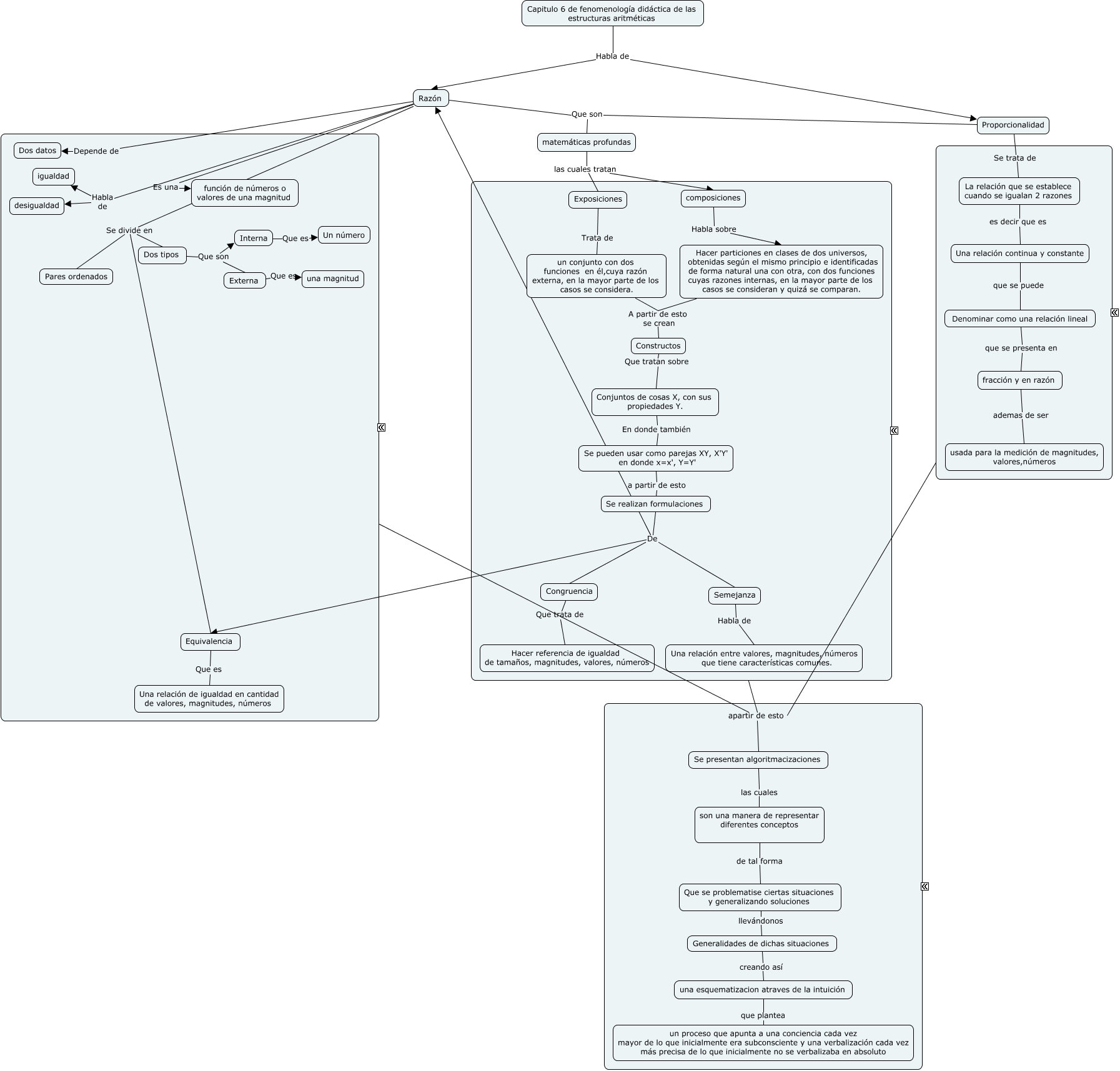 Este Cmap, tiene información relacionada con: capitulo 6, Se pueden usar como parejas XY, X'Y' en donde x=x', Y=Y' a partir de esto Se realizan formulaciones, Capitulo 6 de fenomenología didáctica de las estructuras aritméticas Habla de Proporcionalidad, Equivalencia Que es Una relación de igualdad en cantidad de valores, magnitudes, números, Razón Se divide en Equivalencia, fracción y en razón ademas de ser usada para la medición de magnitudes, valores,números, Constructos Que tratan sobre Conjuntos de cosas X, con sus propiedades Y., Razón Se divide en Pares ordenados, Razón Que son matemáticas profundas, Exposiciones Trata de un conjunto con dos funciones en él,cuya razón externa, en la mayor parte de los casos se considera., matemáticas profundas las cuales tratan composiciones, Dos tipos Que son Externa, Generalidades de dichas situaciones creando así una esquematizacion atraves de la intuición, Se realizan formulaciones De Equivalencia, trata sobre apartir de esto Se presentan algoritmacizaciones, Conjuntos de cosas X, con sus propiedades Y. En donde también Se pueden usar como parejas XY, X'Y' en donde x=x', Y=Y', Razón Se divide en Dos tipos, Se realizan formulaciones De Razón, Razón Depende de Dos datos, Razón Habla de desigualdad, Dos tipos Que son Interna