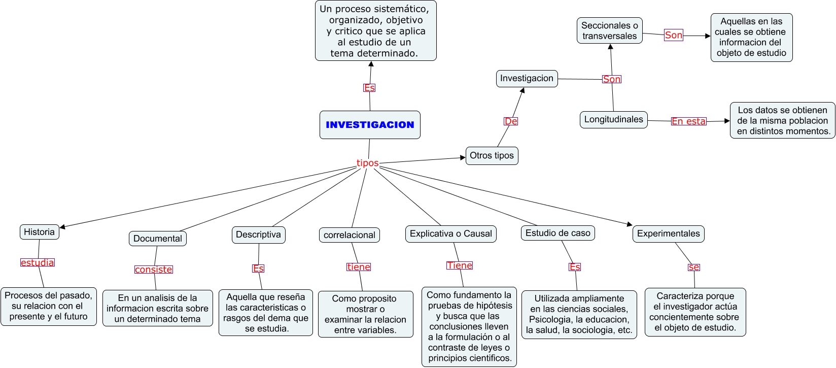 Este Cmap, tiene información relacionada con: investigacion 1, INVESTIGACION tipos Documental, Estudio de caso Es Utilizada ampliamente en las ciencias sociales, Psicologia, la educacion, la salud, la sociologia, etc., INVESTIGACION tipos Experimentales, INVESTIGACION tipos Explicativa o Causal, Explicativa o Causal Tiene Como fundamento la pruebas de hipótesis y busca que las conclusiones lleven a la formulación o al contraste de leyes o principios cientificos., Seccionales o transversales Son Aquellas en las cuales se obtiene informacion del objeto de estudio, INVESTIGACION tipos Estudio de caso, Documental consiste En un analisis de la informacion escrita sobre un determinado tema, Otros tipos De Investigacion, INVESTIGACION Es Un proceso sistemático, organizado, objetivo y critico que se aplica al estudio de un tema determinado., Descriptiva Es Aquella que reseña las caracteristicas o rasgos del dema que se estudia., INVESTIGACION tipos Otros tipos, Historia estudia Procesos del pasado, su relacion con el presente y el futuro, Experimentales se Caracteriza porque el investigador actúa concientemente sobre el objeto de estudio., Investigacion Son Seccionales o transversales, INVESTIGACION tipos correlacional, INVESTIGACION tipos Historia, Investigacion Son Longitudinales, Longitudinales En esta Los datos se obtienen de la misma poblacion en distintos momentos., INVESTIGACION tipos Descriptiva