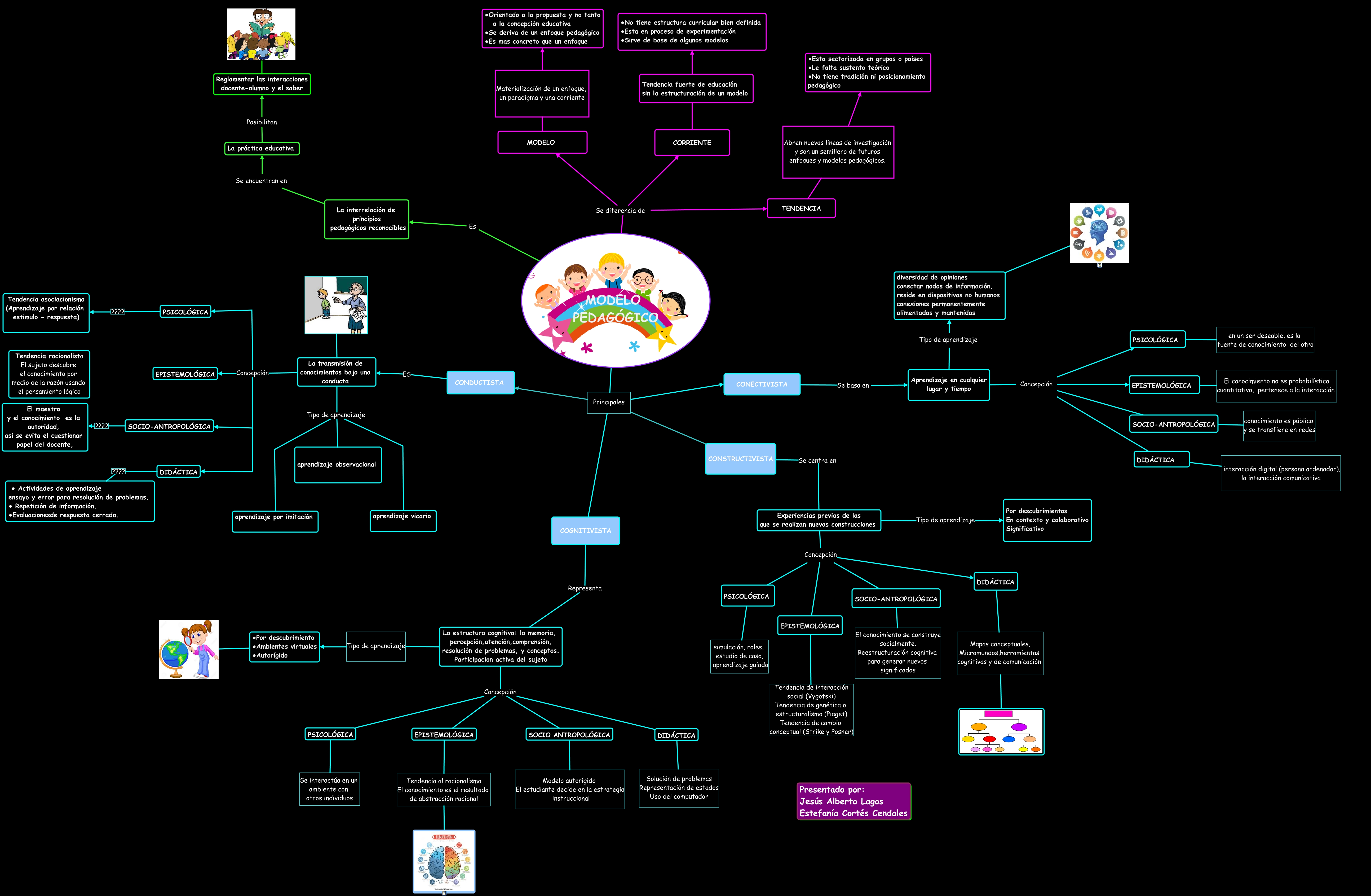 Este Cmap, tiene información relacionada con: Modelo pedagógico, MODELO PEDAGÓGICO Se diferencia de MODELO, MODELO PEDAGÓGICO Es La interrelación de principios pedagógicos reconocibles, La transmisión de conocimientos bajo una conducta Tipo de aprendizaje aprendizaje observacional, DIDÁCTICA Mapas conceptuales, Micromundos,herramientas cognitivas y de comunicación, Aprendizaje en cualquier lugar y tiempo Tipo de aprendizaje diversidad de opiniones conectar nodos de información, reside en dispositivos no humanos conexiones permanentemente alimentadas y mantenidas, Aprendizaje en cualquier lugar y tiempo Concepción PSICOLÓGICA, PSICOLÓGICA simulación, roles, estudio de caso, aprendizaje guiado, Experiencias previas de las que se realizan nuevas construcciones Tipo de aprendizaje Por descubrimientos En contexto y colaborativo Significativo, Experiencias previas de las que se realizan nuevas construcciones Concepción SOCIO-ANTROPOLÓGICA, La práctica educativa Posibilitan Reglamentar las interacciones docente-alumno y el saber, diversidad de opiniones conectar nodos de información, reside en dispositivos no humanos conexiones permanentemente alimentadas y mantenidas, DIDÁCTICA Solución de problemas Representación de estados Uso del computador, Experiencias previas de las que se realizan nuevas construcciones Concepción DIDÁCTICA, SOCIO-ANTROPOLÓGICA conocimiento es público y se transfiere en redes, TENDENCIA Abren nuevas lineas de investigación y son un semillero de futuros enfoques y modelos pedagógicos. ∙Esta sectorizada en grupos o paises ∙Le falta sustento teórico ∙No tiene tradición ni posicionamiento pedagógico, Experiencias previas de las que se realizan nuevas construcciones Concepción EPISTEMOLÓGICA, La estructura cognitiva: la memoria, percepción,atención,comprensión, resolución de problemas, y conceptos. Participacion activa del sujeto Concepción SOCIO ANTROPOLÓGICA, CONDUCTISTA ES La transmisión de conocimientos bajo una conducta, PSICOLÓGICA ???? Tendencia asociacionismo (Aprendizaje por relación estimulo - respuesta), MODELO PEDAGÓGICO Principales CONSTRUCTIVISTA
