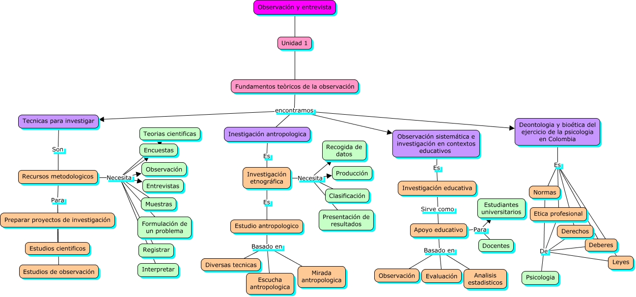 Este Cmap, tiene información relacionada con: unidad 1. observación y entrevista, Recursos metodologicos Para Estudios de observación, Recursos metodologicos Para Preparar proyectos de investigación, Investigación etnográfica Necesita Recogida de datos, Investigación educativa Sirve como Apoyo educativo, Fundamentos teòricos de la observación encontramos Deontologia y bioética del ejercicio de la psicologia en Colombia, Fundamentos teòricos de la observación encontramos Observación sistemática e investigación en contextos educativos, Investigación etnográfica Necesita Presentación de resultados, Recursos metodologicos Necesita Observación, Fundamentos teòricos de la observación encontramos Inestigación antropologica, Inestigación antropologica Es Investigación etnográfica, Derechos De Psicologia, Apoyo educativo Para Docentes, Etica profesional De Psicologia, Estudio antropologico Basado en Escucha antropologica, Fundamentos teòricos de la observación encontramos Tecnicas para investigar, Recursos metodologicos Necesita Muestras, Normas De Psicologia, Tecnicas para investigar Son Recursos metodologicos, Recursos metodologicos Necesita Formulación de un problema, Recursos metodologicos Necesita Teorias cientificas