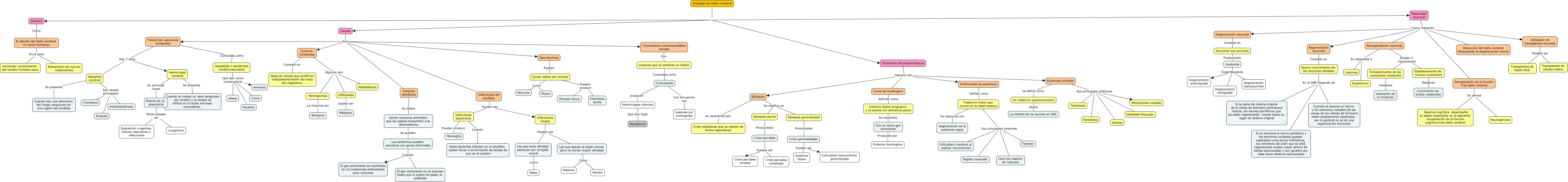 Este Cmap, tiene información relacionada con: Daño cerebral, Axotomía Desembocando Degeneración anterógrada, Causas Son Neurotoxinas, Genes recesivos anómalos que los padres transmiten a la descendenica Se pueden Los tarstornos pueden asociarse con genes dominates, Trastorno motor que ocurre en la edad madura Sus principales síntomas Cara con aspecto de mascara, Epilepsia Se clasifica en Epilepsia generalizada, Causas Son Trastornos vasculares Cerebrales, Epilepsia Se clasifica en Epilepsia parcia, Lesiones que no perforan el cráneo Conocidas como Contusiones, Reorganización neuronal En respuesta a Lesiones, Degeneración neuronal Consiste en Seccionar sus acciones, Nuevo crecicimiento de las neuronas dañadas En el SNP Depende de Cuando se lesiona un nervio y los extremos cortados de las vainas de las células de Schwann están ampliamente separados, por lo general no se da una regeneración funcional., Factores Genéticos Se deben Genes recesivos anómalos que los padres transmiten a la descendenica, Trastorno motor que ocurre en la edad madura Sus principales síntomas Dificultad y lentitud al realizar movimientos, Plasticidad neuronal Como responde Reorganización neuronal, Infecciones bacteriana Cuando Estas bacterias infectan en el encéfalo, suelen llevar a la formación de bolsas de pus en el cerebro, Los tarstornos pueden asociarse con genes dominates Cuando El gen dominante se manifiesta en circunstancias ambientales poco comunes, Hemorragias internas Que dan lugar Hematoma, Trastorno motor que ocurre en la edad madura Se relaciona con degeneración de la sustancia negra, Causas Son Tumores Cerebrales, Reorganización neuronal Existen 2 mecanismos Fortalecimiento de las conexiones existentes