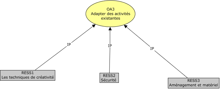 Cette carte de concepts créée avec IHMC CmapTools traite de: OA3 (vraie), RESS1 Les techniques de créativité IP OA3 Adapter des activités existantes, RESS2 Sécurité IP OA3 Adapter des activités existantes, RESS3 Aménagement et matériel IP OA3 Adapter des activités existantes