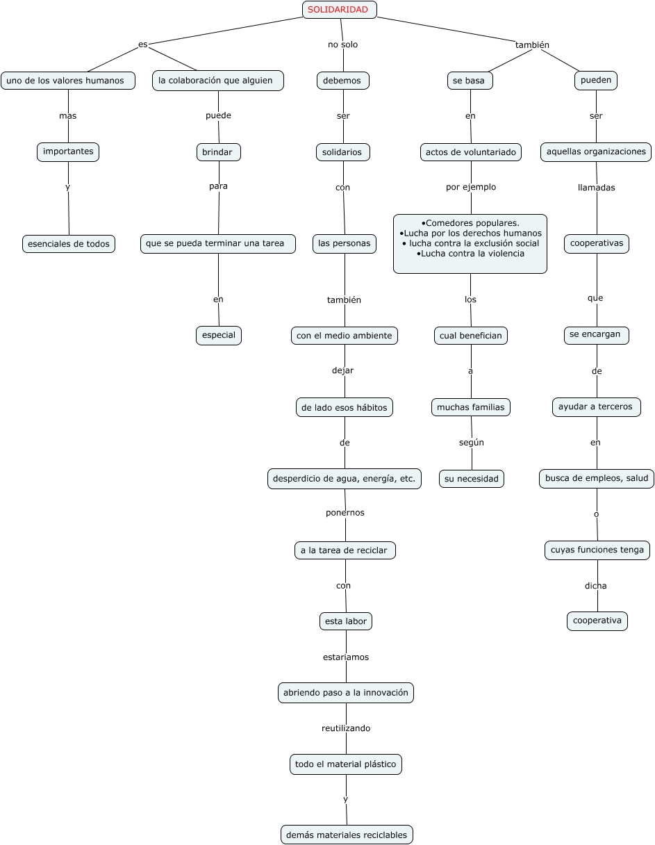 Este Cmap, tiene información relacionada con: solidaridad, las personas también con el medio ambiente, solidarios con las personas, de lado esos hábitos de desperdicio de agua, energía, etc., aquellas organizaciones llamadas cooperativas, SOLIDARIDAD también se basa, SOLIDARIDAD es uno de los valores humanos, esta labor estariamos abriendo paso a la innovación, SOLIDARIDAD también pueden, que se pueda terminar una tarea en especial, brindar para que se pueda terminar una tarea, cuyas funciones tenga dicha cooperativa, pueden ser aquellas organizaciones, • Comedores populares. •Lucha por los derechos humanos • lucha contra la exclusión social •Lucha contra la violencia los cual benefician, busca de empleos, salud o cuyas funciones tenga, se basa en actos de voluntariado, abriendo paso a la innovación reutilizando todo el material plástico, SOLIDARIDAD no solo debemos, cooperativas que se encargan, a la tarea de reciclar con esta labor, muchas familias según su necesidad