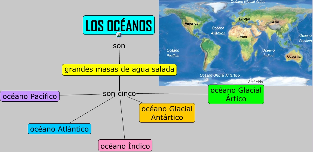 Este Cmap, tiene información relacionada con: Los océanos, grandes masas de agua salada son cinco océano Índico, grandes masas de agua salada son cinco océano Pacífico, grandes masas de agua salada son cinco océano Glacial Ártico, grandes masas de agua salada son cinco océano Glacial Antártico, grandes masas de agua salada son cinco océano Atlántico, LOS OCÉANOS son grandes masas de agua salada