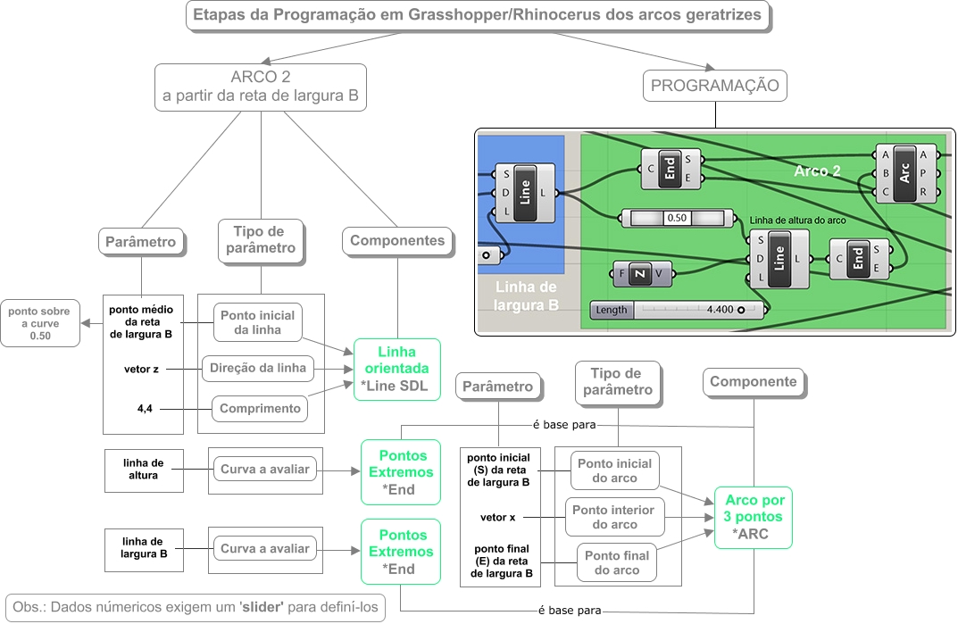 Esse mapa conceitual, produzido no IHMC CmapTools, tem a informação relacionada a: etapas_program_arco_geratriz_2, ARCO 2 a partir da reta de largura B Componentes, Ponto inicial da linha Linha orientada *Line SDL, Comprimento Linha orientada *Line SDL, Etapas da Programação em Grasshopper/Rhinocerus dos arcos geratrizes ARCO 2 a partir da reta de largura B, Tipo de parâmetro, Ponto final do arco Arco por 3 pontos *ARC, Ponto interior do arco Arco por 3 pontos *ARC, Curva a avaliar Pontos Extremos *End, Etapas da Programação em Grasshopper/Rhinocerus dos arcos geratrizes PROGRAMAÇÃO, Parâmetro ponto médio da reta de largura B, ponto médio da reta de largura B ponto sobre a curve 0.50, linha de largura B Curva a avaliar, ARCO 2 a partir da reta de largura B Parâmetro, PROGRAMAÇÃO, Pontos Extremos *End é base para Arco por 3 pontos *ARC, linha de altura Curva a avaliar, vetor z Direção da linha, vetor x Ponto interior do arco, ARCO 2 a partir da reta de largura B Tipo de parâmetro, Componente Arco por 3 pontos *ARC