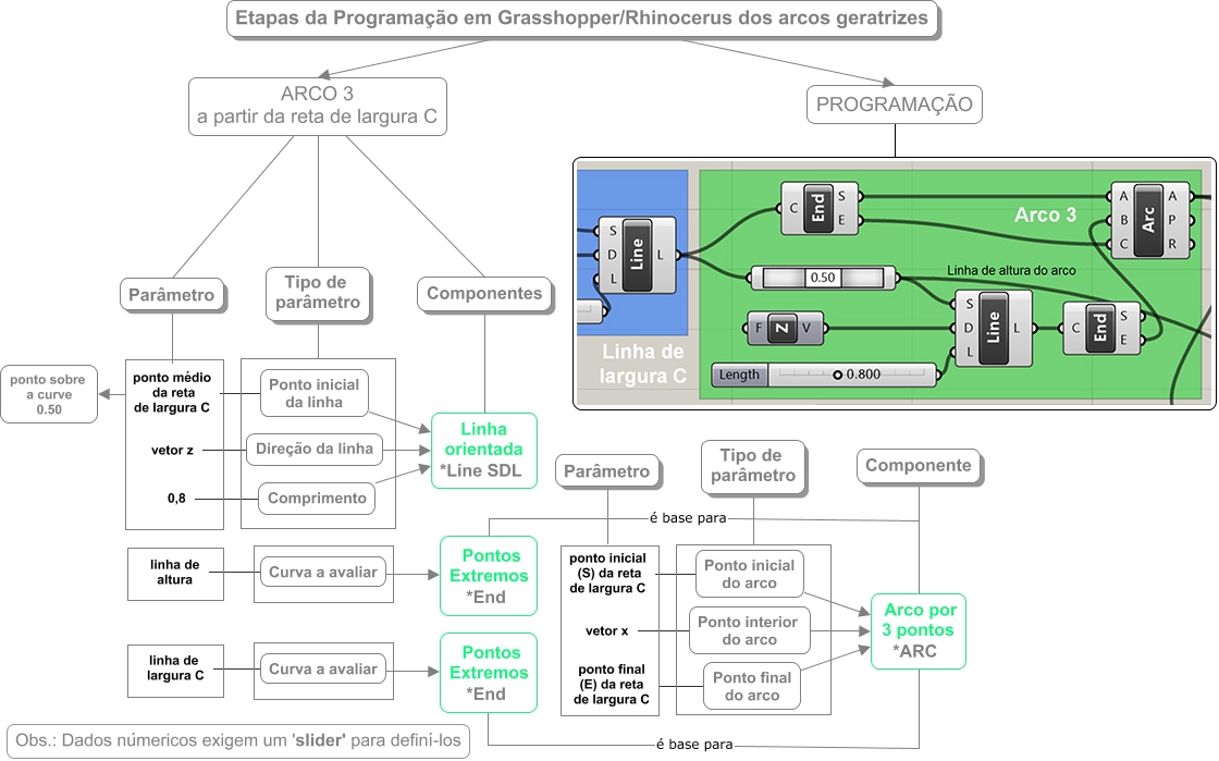 Esse mapa conceitual, produzido no IHMC CmapTools, tem a informação relacionada a: etapas_program_arco_geratriz_3, ARCO 3 a partir da reta de largura C Componentes, ARCO 3 a partir da reta de largura C Parâmetro, Componentes Linha orientada *Line SDL, PROGRAMAÇÃO, Ponto inicial da linha Linha orientada *Line SDL, linha de altura Curva a avaliar, vetor z Direção da linha, Tipo de parâmetro, Componente Arco por 3 pontos *ARC, Ponto interior do arco Arco por 3 pontos *ARC, Pontos Extremos *End é base para Arco por 3 pontos *ARC, Curva a avaliar Pontos Extremos *End, Pontos Extremos *End é base para Arco por 3 pontos *ARC, Direção da linha Linha orientada *Line SDL, ARCO 3 a partir da reta de largura C Tipo de parâmetro, ponto médio da reta de largura C Ponto inicial da linha, linha de largura C Curva a avaliar, Curva a avaliar Pontos Extremos *End, Etapas da Programação em Grasshopper/Rhinocerus dos arcos geratrizes ARCO 3 a partir da reta de largura C, Ponto inicial do arco Arco por 3 pontos *ARC