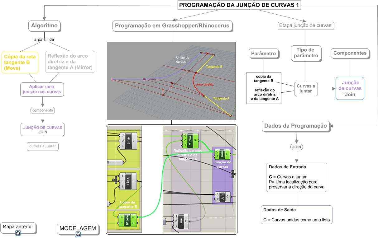 Esse mapa conceitual, produzido no IHMC CmapTools, tem a informação relacionada a: programacao_join1, PROGRAMAÇÃO DA JUNÇÃO DE CURVAS 1 Algoritmo, cópia da tangente B Curvas a juntar, PROGRAMAÇÃO DA JUNÇÃO DE CURVAS 1 Programação em Grasshopper/Rhinocerus, PROGRAMAÇÃO DA JUNÇÃO DE CURVAS 1 Dados da Programação, PROGRAMAÇÃO DA JUNÇÃO DE CURVAS 1 Etapa junção de curvas Tipo de parâmetro, Cópia da reta tangente B (Move) Aplicar uma junção nas curvas, Parâmetro, Reflexão do arco diretriz e da tangente A (Mirror) Aplicar uma junção nas curvas, JUNÇÃO DE CURVAS JOIN curvas a juntar, Componentes Junção de curvas *Join, reflexão do arco diretriz e da tangente A Curvas a juntar, Algoritmo a partir da Cópia da reta tangente B (Move), Dados de Entrada C = Curvas a juntar P= Uma localização para preservar a direção da curva Dados de Saída C = Curvas unidas como uma lista, Tipo de parâmetro Curvas a juntar,, Curvas a juntar Junção de curvas *Join, Aplicar uma junção nas curvas componente JUNÇÃO DE CURVAS JOIN, Dados da Programação JOIN Dados de Entrada C = Curvas a juntar P= Uma localização para preservar a direção da curva, Programação em Grasshopper/Rhinocerus, Algoritmo a partir da Reflexão do arco diretriz e da tangente A (Mirror)
