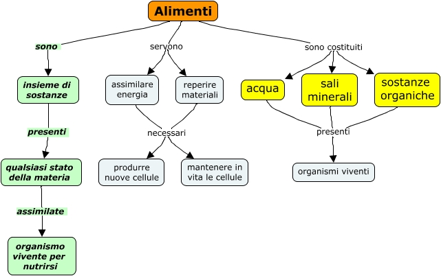 Questa Cmap, creata con IHMC CmapTools, contiene informazioni relative a: 14.01 Cosa sono gli alimenti, Alimenti sono costituiti sali minerali, sostanze organiche presenti organismi viventi, Alimenti sono costituiti acqua, Alimenti servono reperire materiali, acqua presenti organismi viventi, assimilare energia necessari mantenere in vita le cellule, Alimenti sono insieme di sostanze, reperire materiali necessari produrre nuove cellule, assimilare energia necessari produrre nuove cellule, reperire materiali necessari mantenere in vita le cellule, insieme di sostanze presenti qualsiasi stato della materia, Alimenti servono assimilare energia, Alimenti sono costituiti sostanze organiche, sali minerali presenti organismi viventi, qualsiasi stato della materia assimilate organismo vivente per nutrirsi