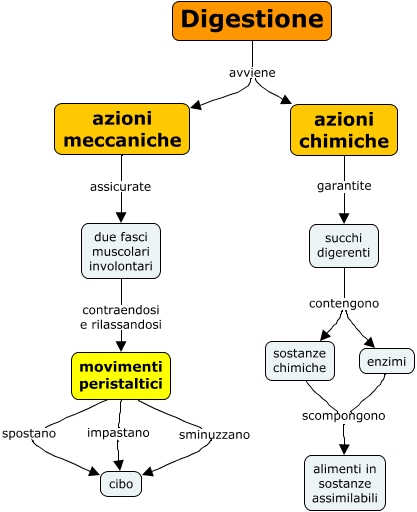Questa Cmap, creata con IHMC CmapTools, contiene informazioni relative a: 15.02 La digestione, Digestione avviene azioni chimiche, movimenti peristaltici spostano cibo, azioni meccaniche assicurate due fasci muscolari involontari, succhi digerenti contengono sostanze chimiche, azioni chimiche garantite succhi digerenti, due fasci muscolari involontari contraendosi e rilassandosi movimenti peristaltici, enzimi scompongono alimenti in sostanze assimilabili, succhi digerenti contengono enzimi, Digestione avviene azioni meccaniche, movimenti peristaltici impastano cibo, sostanze chimiche scompongono alimenti in sostanze assimilabili, movimenti peristaltici sminuzzano cibo