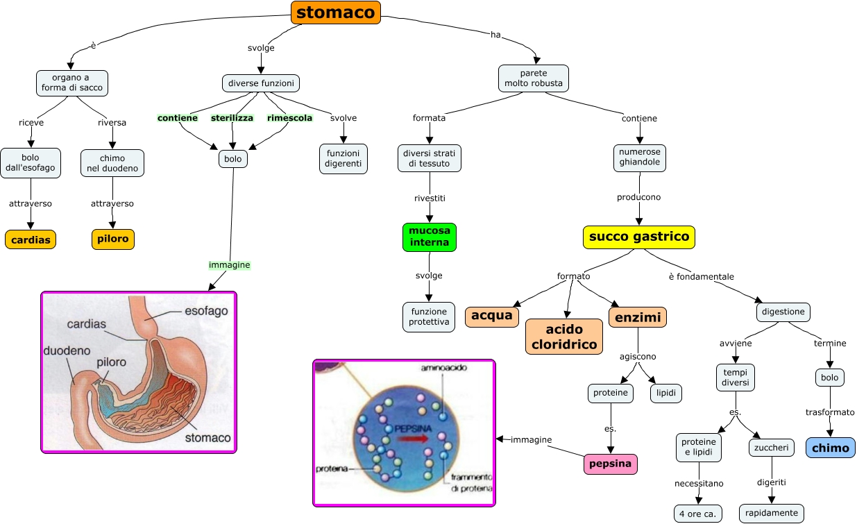 Questa Cmap, creata con IHMC CmapTools, contiene informazioni relative a: 15.06 Stomaco, pepsina immagine, tempi diversi es. proteine e lipidi, bolo immagine, diverse funzioni rimescola bolo, numerose ghiandole producono succo gastrico, bolo trasformato chimo, stomaco ha parete molto robusta, digestione avviene tempi diversi, succo gastrico formato acqua, diverse funzioni svolve funzioni digerenti, parete molto robusta contiene numerose ghiandole, parete molto robusta formata diversi strati di tessuto, succo gastrico formato acido cloridrico, zuccheri digeriti rapidamente, digestione termine bolo, proteine e lipidi necessitano 4 ore ca., stomaco è organo a forma di sacco, organo a forma di sacco riversa chimo nel duodeno, enzimi agiscono proteine, mucosa interna svolge funzione protettiva