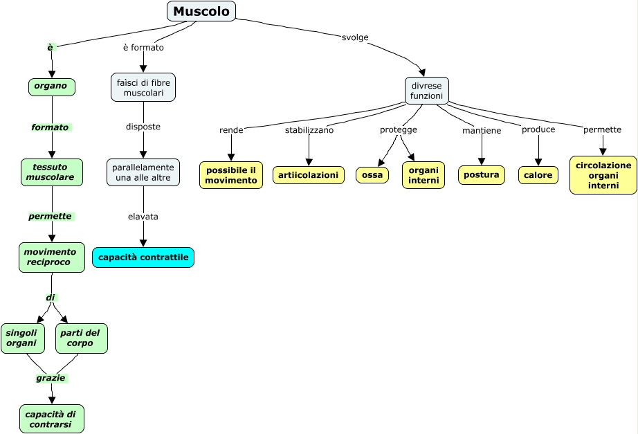 Questa Cmap, creata con IHMC CmapTools, contiene informazioni relative a: 13.01 Muscolo, divrese funzioni mantiene postura, Muscolo è organo, divrese funzioni protegge ossa, organo formato tessuto muscolare, movimento reciproco di singoli organi, divrese funzioni stabilizzano artiicolazioni, Muscolo svolge divrese funzioni, movimento reciproco di parti del corpo, divrese funzioni produce calore, faìsci di fibre muscolari disposte parallelamente una alle altre, parti del corpo grazie capacità di contrarsi, tessuto muscolare permette movimento reciproco, parallelamente una alle altre elavata capacità contrattile, singoli organi grazie capacità di contrarsi, divrese funzioni rende possibile il movimento, divrese funzioni protegge organi interni, Muscolo è formato faìsci di fibre muscolari, divrese funzioni permette circolazione organi interni