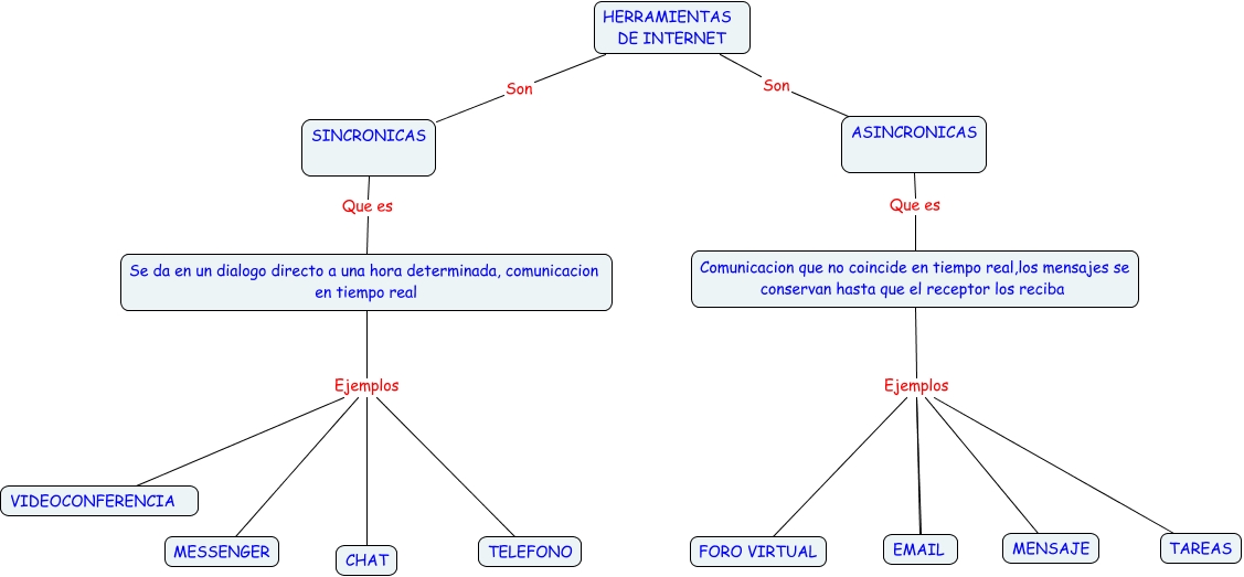 Este Cmap, tiene información relacionada con: HERRAMIENTAS DE INTERNET, Comunicacion que no coincide en tiempo real,los mensajes se conservan hasta que el receptor los reciba Ejemplos TAREAS, SINCRONICAS Que es Se da en un dialogo directo a una hora determinada, comunicacion en tiempo real, Comunicacion que no coincide en tiempo real,los mensajes se conservan hasta que el receptor los reciba Ejemplos EMAIL, Se da en un dialogo directo a una hora determinada, comunicacion en tiempo real Ejemplos MESSENGER, Comunicacion que no coincide en tiempo real,los mensajes se conservan hasta que el receptor los reciba Ejemplos FORO VIRTUAL, HERRAMIENTAS DE INTERNET Son ASINCRONICAS, Comunicacion que no coincide en tiempo real,los mensajes se conservan hasta que el receptor los reciba Ejemplos MENSAJE, Se da en un dialogo directo a una hora determinada, comunicacion en tiempo real Ejemplos CHAT, HERRAMIENTAS DE INTERNET Son SINCRONICAS, Comunicacion que no coincide en tiempo real,los mensajes se conservan hasta que el receptor los reciba Ejemplos EMAIL, Se da en un dialogo directo a una hora determinada, comunicacion en tiempo real Ejemplos TELEFONO, ASINCRONICAS Que es Comunicacion que no coincide en tiempo real,los mensajes se conservan hasta que el receptor los reciba, Se da en un dialogo directo a una hora determinada, comunicacion en tiempo real Ejemplos VIDEOCONFERENCIA